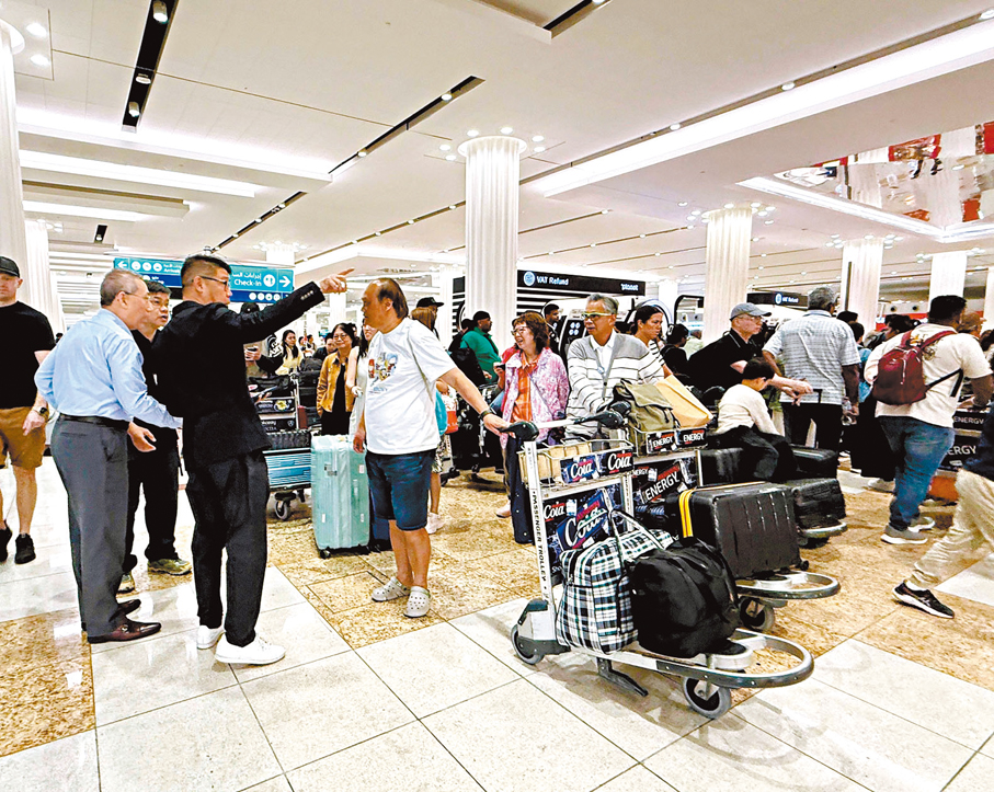 中東戰火一度令阿聯酋迪拜空域變為禁區,航班取消導致大批港人滯留。隨着當地航空交通漸復常,多個受影響的香港旅行團陸續獲安排回港,香港特區政府駐迪拜經濟貿易辦事處人員自迪拜機場有限度復航後,即協助當地港人理順離境安排,並到場支援及協助港人,務求各人順利登機回港,包括昨日一個一行9人的香港旅行團。截至昨日上午8時,入境處共接獲約780名身在中東地區的港人查詢,其中約200人已安全離開當地,其餘查詢港人均報稱身處安全地方。在接獲的查詢中,近九成是身處阿聯酋的港人,入境處表示,會留意事態發展及積極跟進事件。
