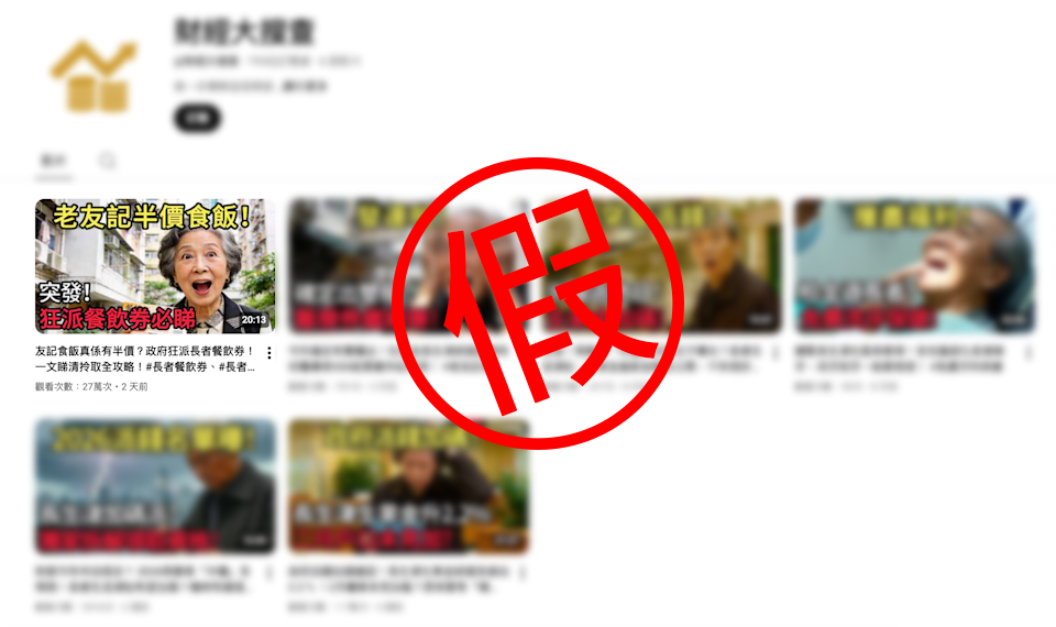 有關影片由一個於2月12日新開設的YouTube頻道發布。該頻道在近期上載多段由人工智能生成的影片,內容均涉及政府「派錢」或推出福利措施,其中一段影片在3月3日上載,標題為「友記食飯真係有半價?政府狂派長者餐飲券!一文睇清拎取全攻略!」聲稱政府會透過配對補貼方式,向長者派發餐飲券。