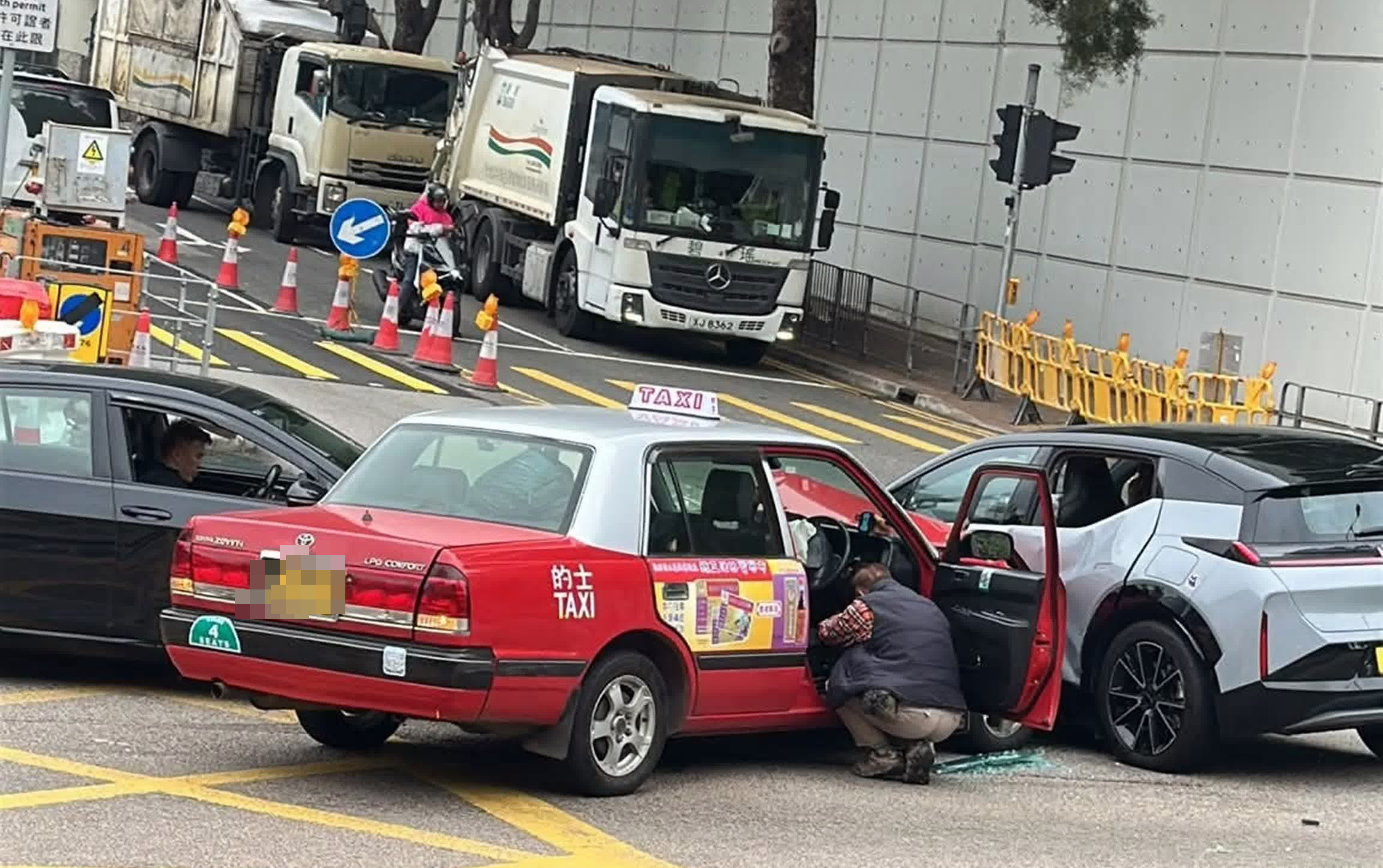 【點新聞報道】今日(10日)上午11時35分,一輛的士和兩輛私家車在葵涌和宜合道與梨樹路交界路中相撞,當中兩名男司機受傷送院,幸傷勢不算嚴重。