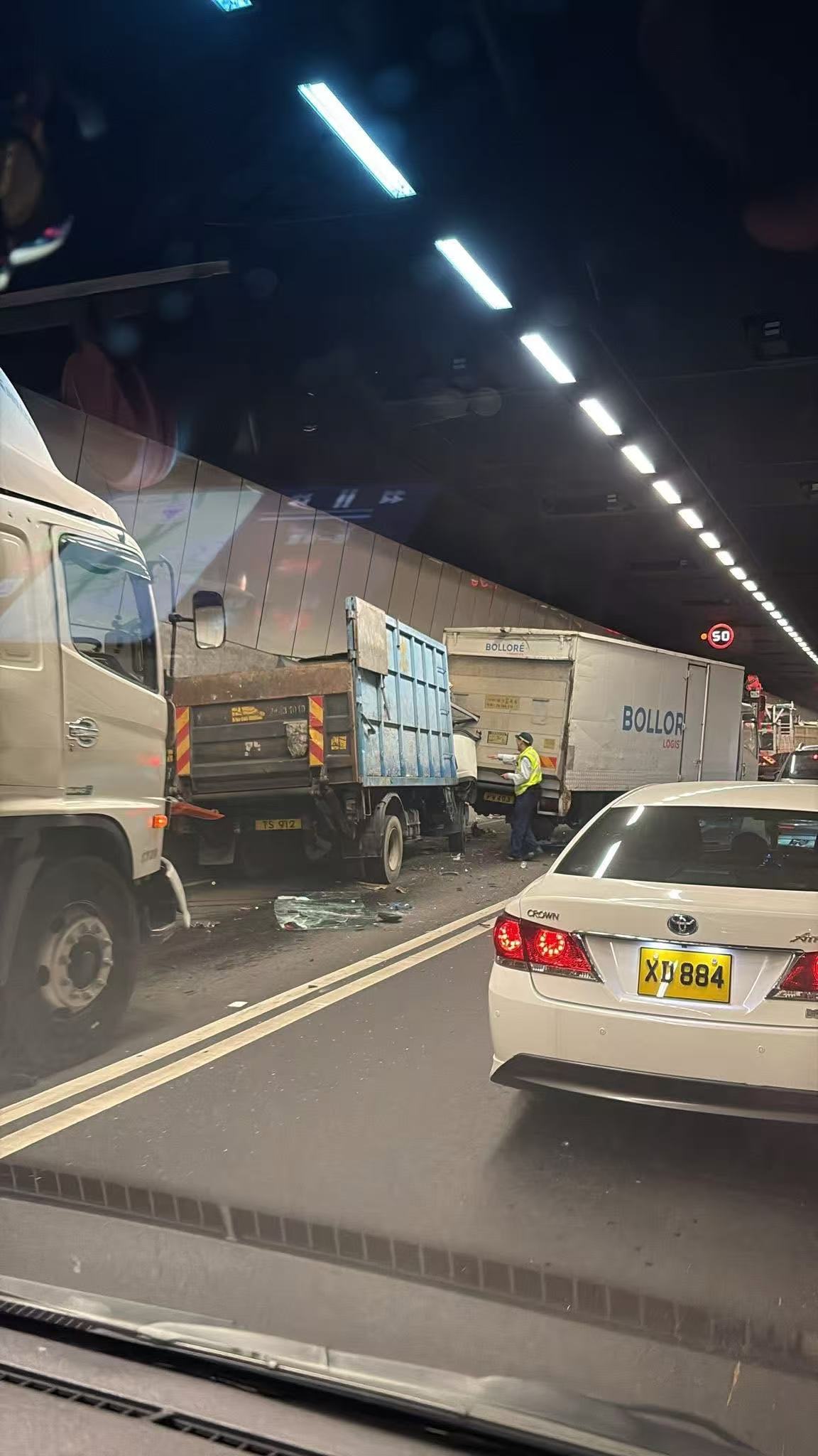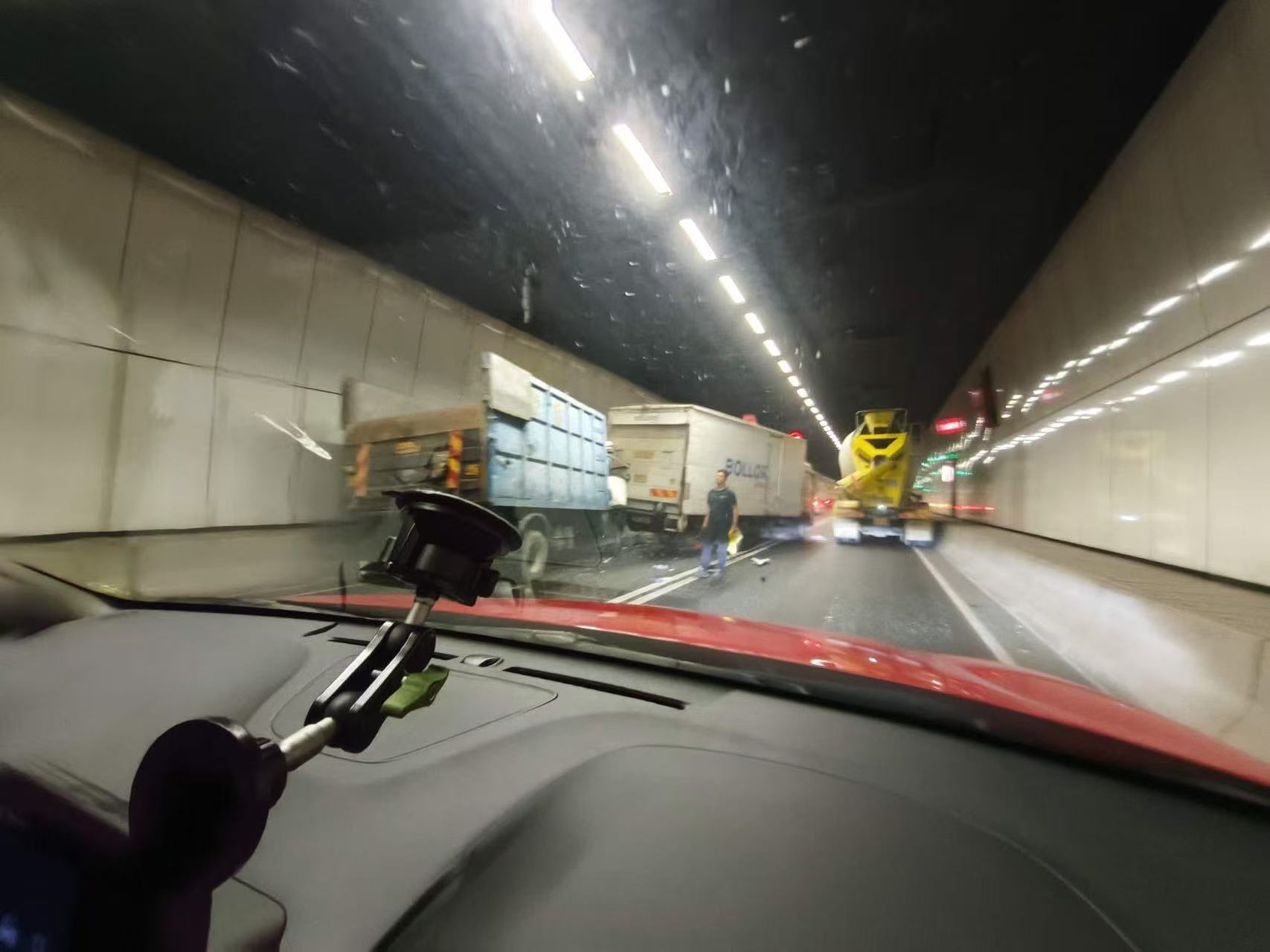 (有片)粉嶺龍山隧道4貨車連環相撞 一度實施單管雙程行車