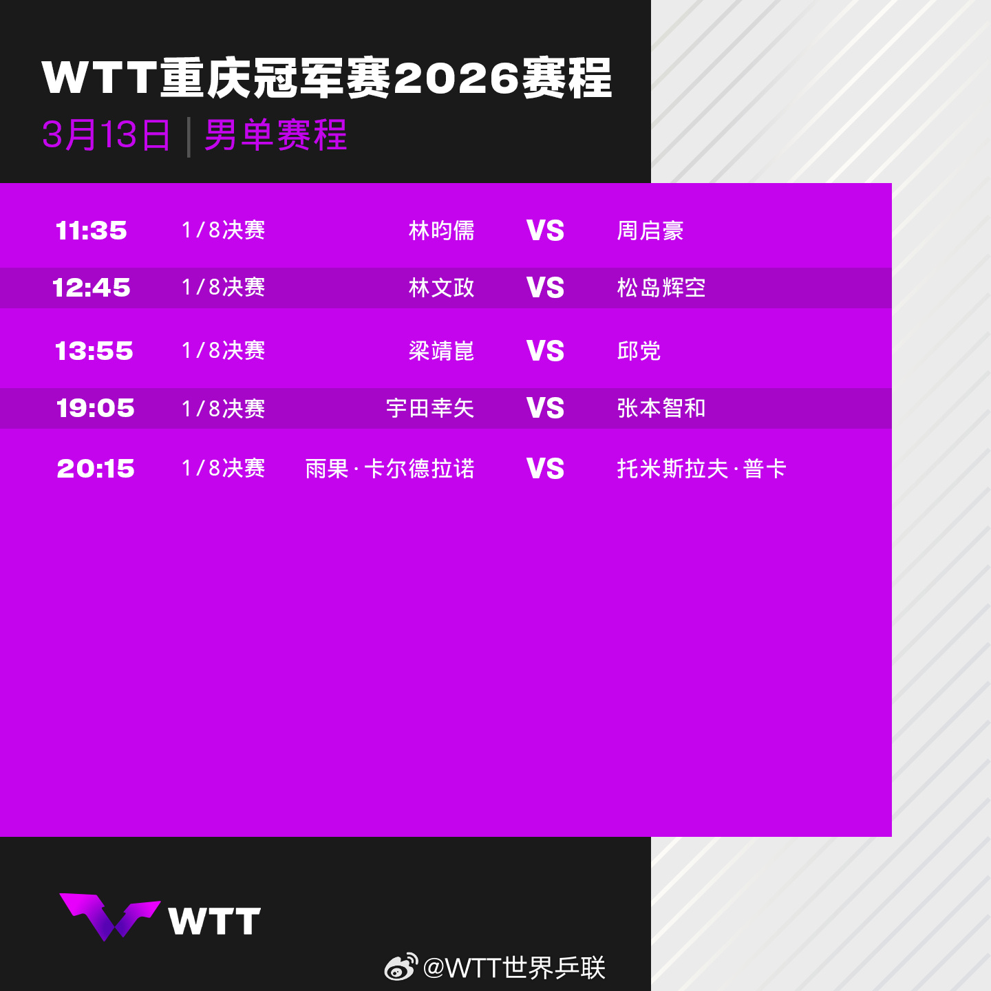 【點新聞報道】WTT重慶冠軍賽2026今日(13日)進入第四個比賽日,將進行6場女單1/8決賽和5場男單1/8決賽。