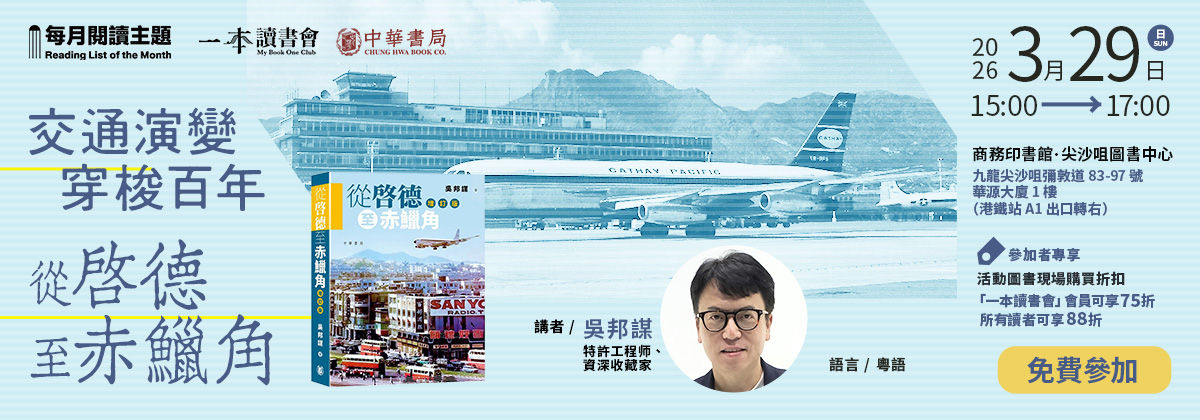 此外,3月29日,聯合出版集團「一本讀書會」將邀請特許工程師兼資深收藏家吳邦謀,以其著作《從啟德至赤鱲角》為藍本,分享香港逾百年的航空故事。