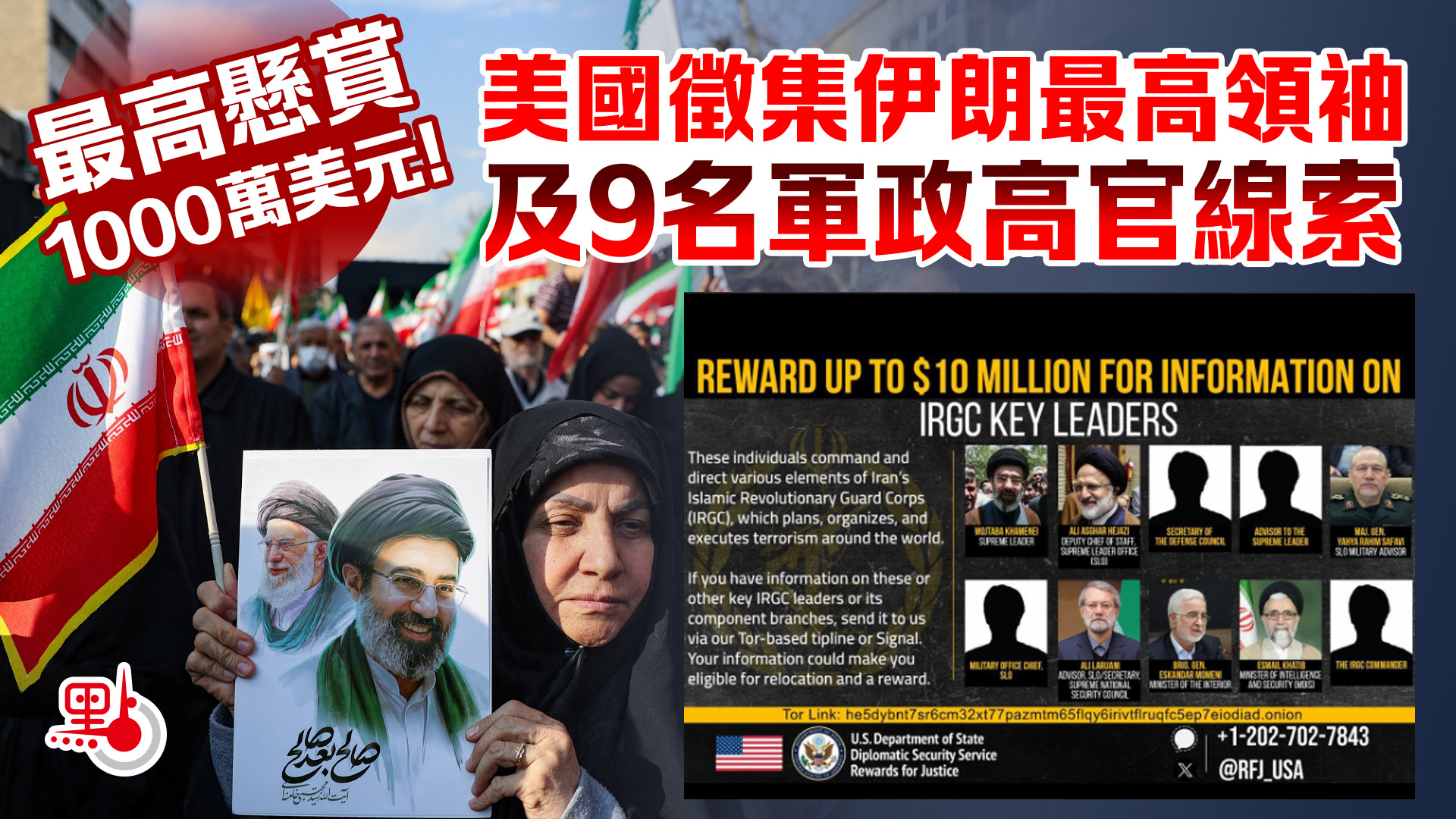 最高懸賞1000萬美元!美國徵集伊朗最高領袖及9名軍政高官線索