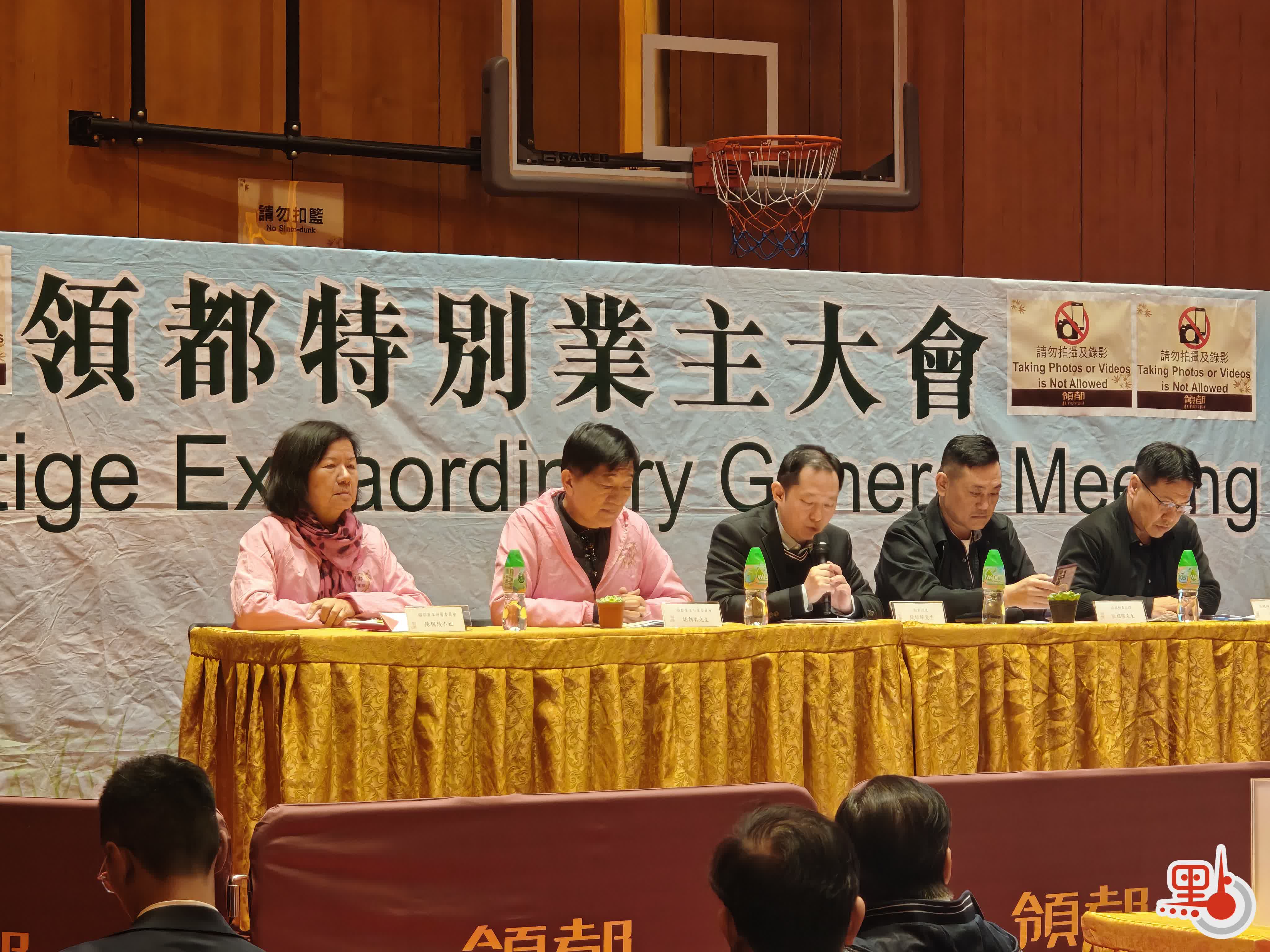 領都昨晚再次召開特別業主大會,就是否恢復工程方案進行表決。截至13日晚8時,共616戶業主出席。管理處代表會上強調,早前大會決議將合約終止,在法律上屬「違約」,恐引致包括住宅及車場業主共同承擔賠償責任。