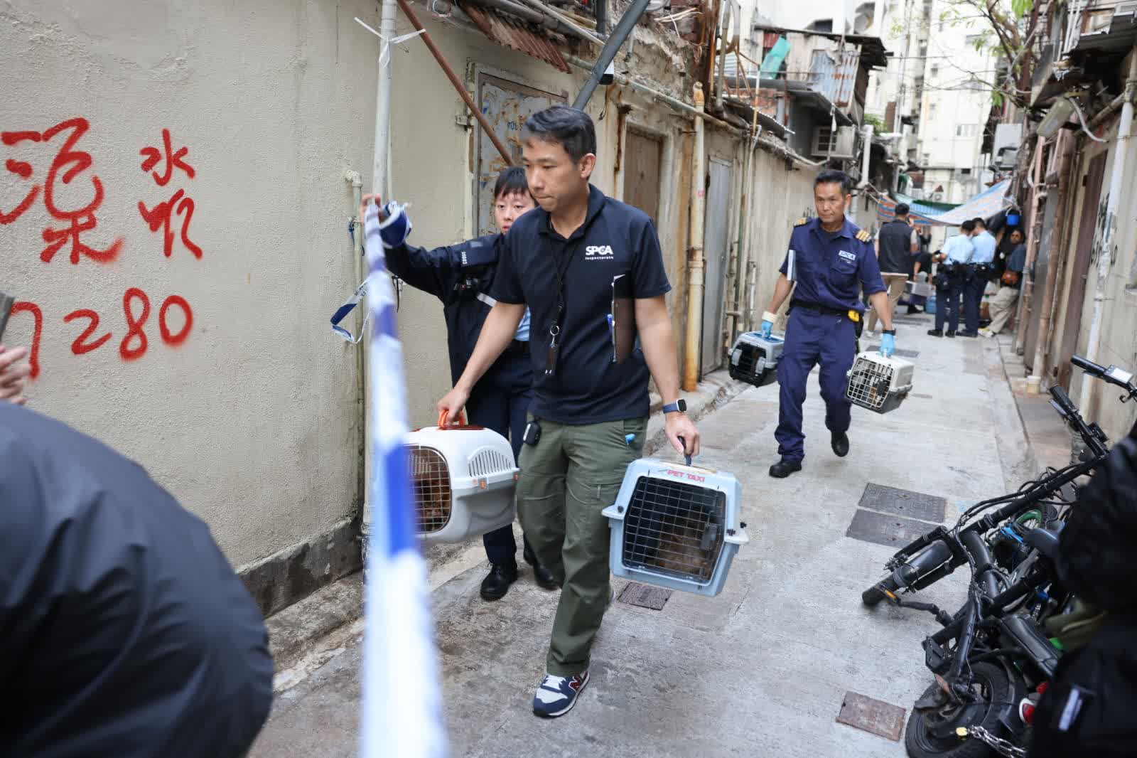 警方經初步調查後,以涉嫌「殘酷對待動物」,拘捕一名姓張(61歲)男子及一名46歲非華裔男子,案件交由深水埗警區刑事調查隊第六隊跟進。