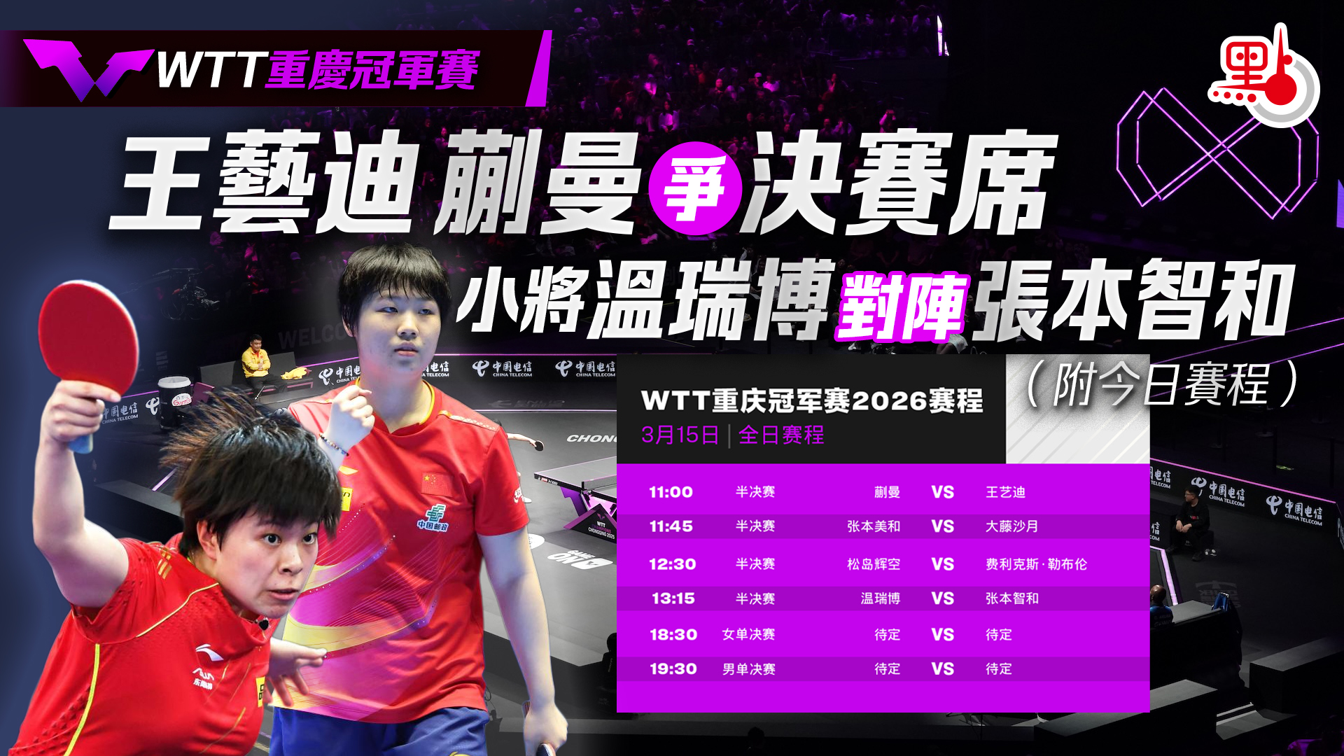 WTT重慶冠軍賽|王藝迪蒯曼爭決賽席 小將溫瑞博對陣張本智和(附今日賽程)