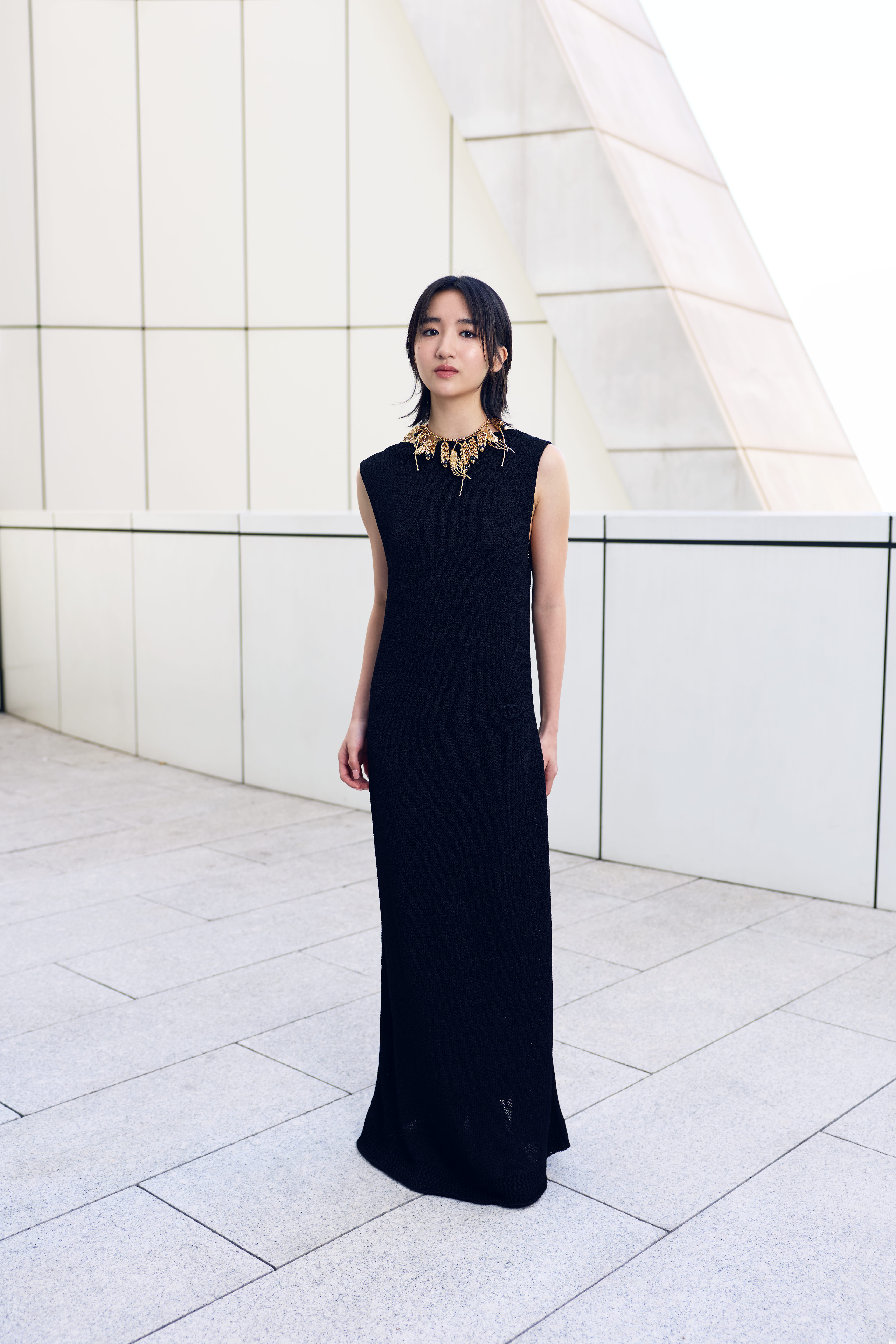 Natalie今晚身穿CHANEL 2026春夏時裝系列 Look 19的經典黑色連身針織裙,配搭金色小麥穗圖案和珠寶。小麥穗象徵幸運、豐饒與繁榮。Natalie今年在《無名指》中飾演罕有病症少女,並與郭富城搭檔演繹父女,影片中的細膩表現令她連續第二年角逐最佳女主角。面對強勁對手,她以平常心面對:「四位入圍者都是我很喜歡的演員,能與她們同場已經很興奮。」