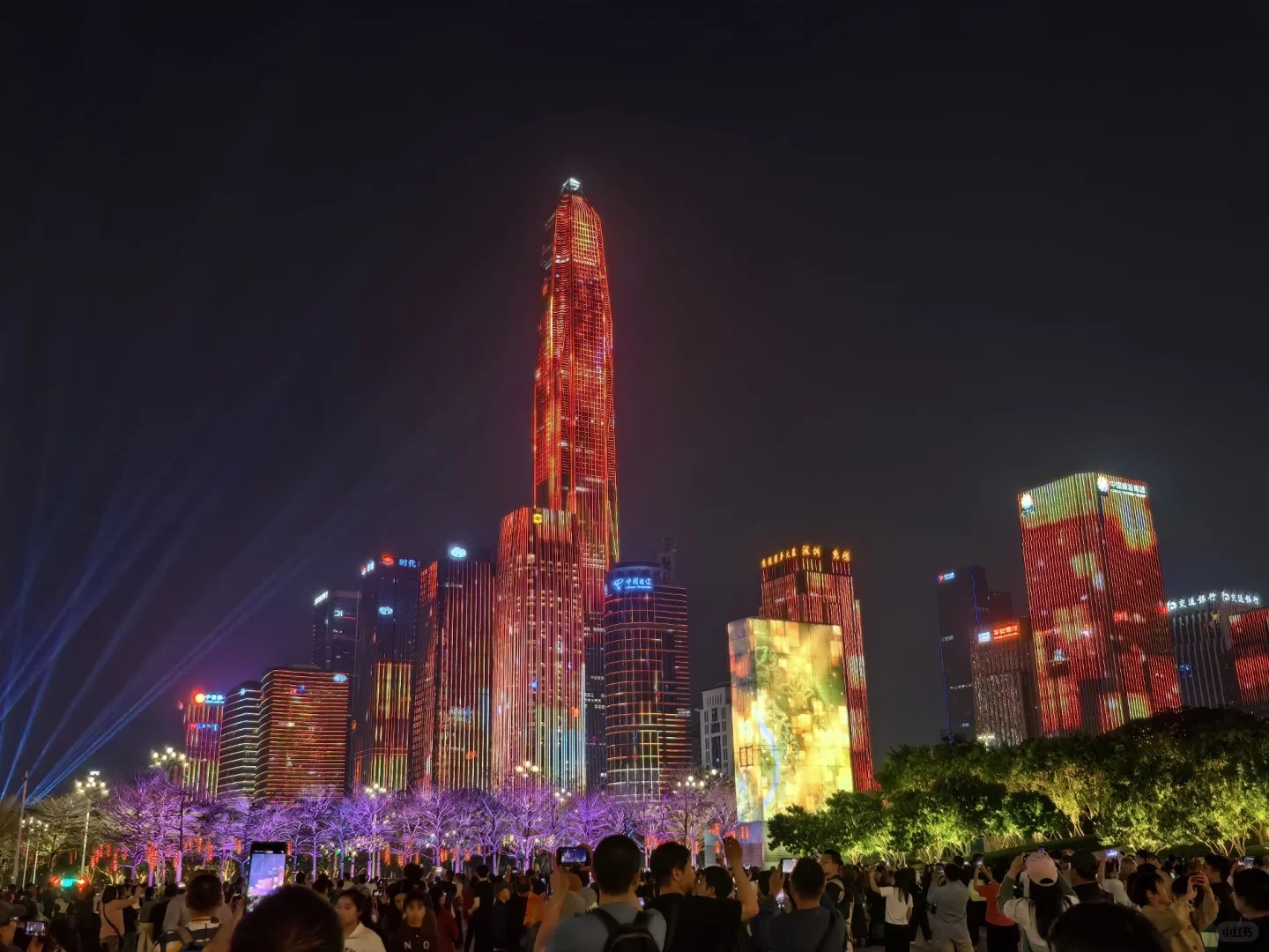 目前,燈光秀通常在每周五、周六及法定節假日上演,每晚共三場,每次持續約15分鐘。具體時間會根據季節調整,冬春季(11月至次年3月)的表演時間為19:00、20:00、21:00;夏秋季(4月至10月)則為19:30、20:30、21:30。需要注意的是,最佳觀賞點位於市民中心廣場,需提前通過微信小程序「福田中心區夜景燈光預約導引服務」進行預約;或可選擇在蓮花山山頂廣場遠眺全景,飽覽璀璨夜景。而在非表演日的周日至周四,建築群通常只開啟大樓的內透光,呈現出另一番靜謐的城市夜景!