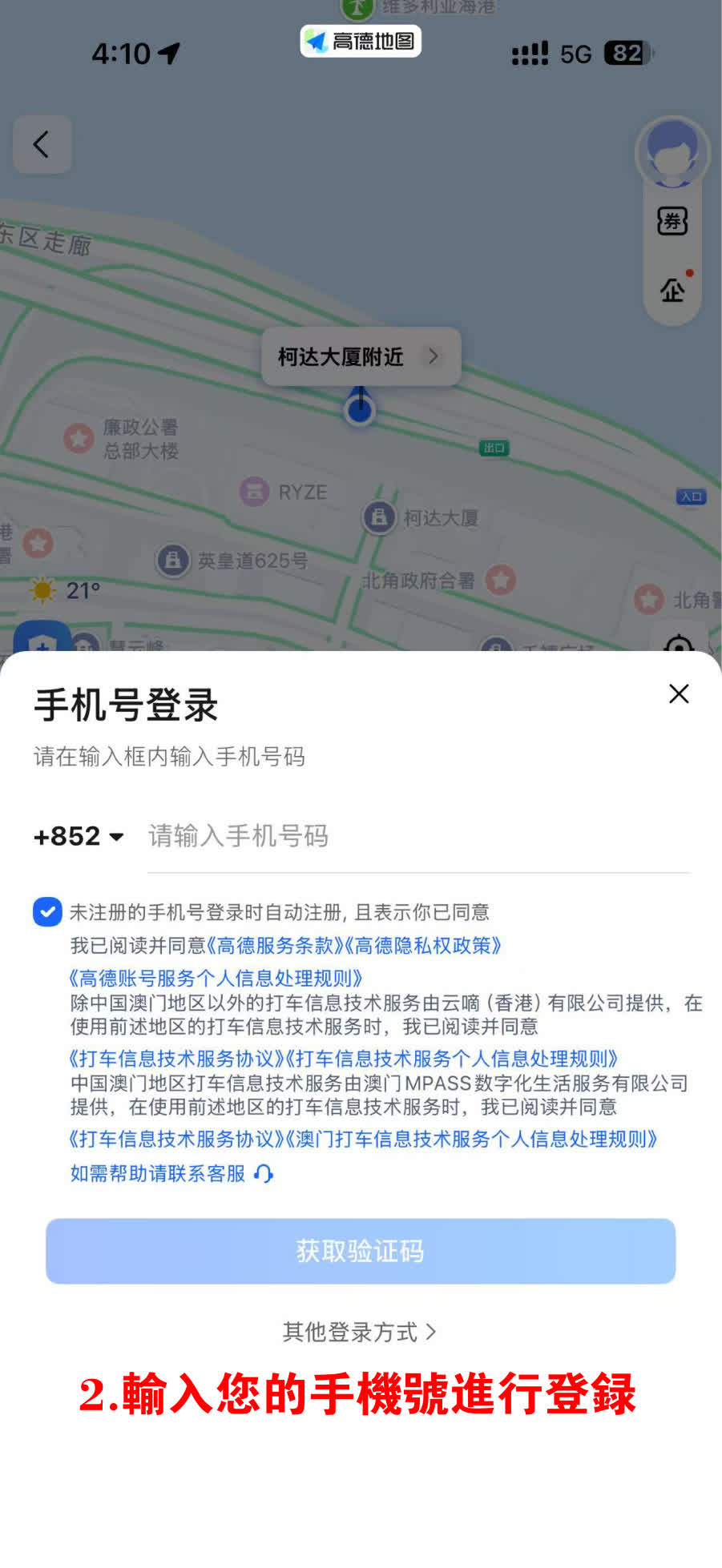 1.打開高德地圖APP或AlipayHK高德打車小程序,點擊call車入口-首页「優惠碼」;