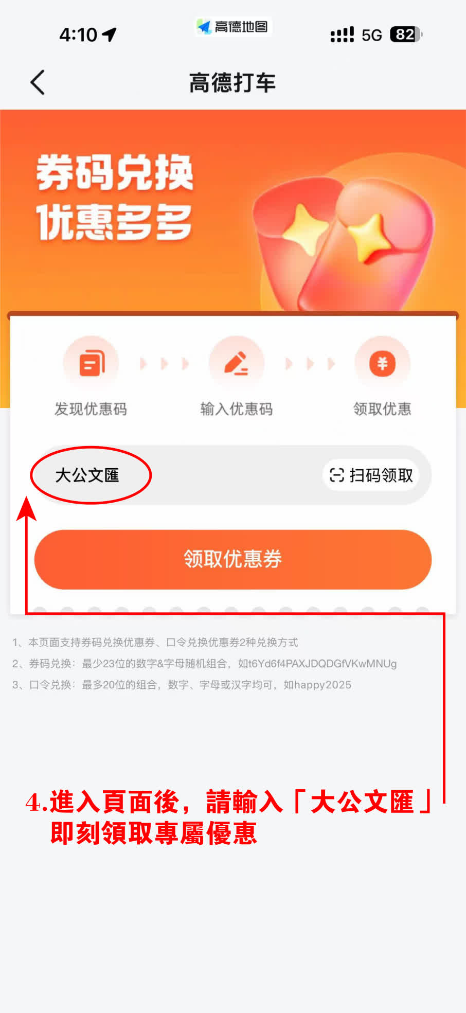 2.輸入優惠碼:「大公文匯」,領取打車優惠券;