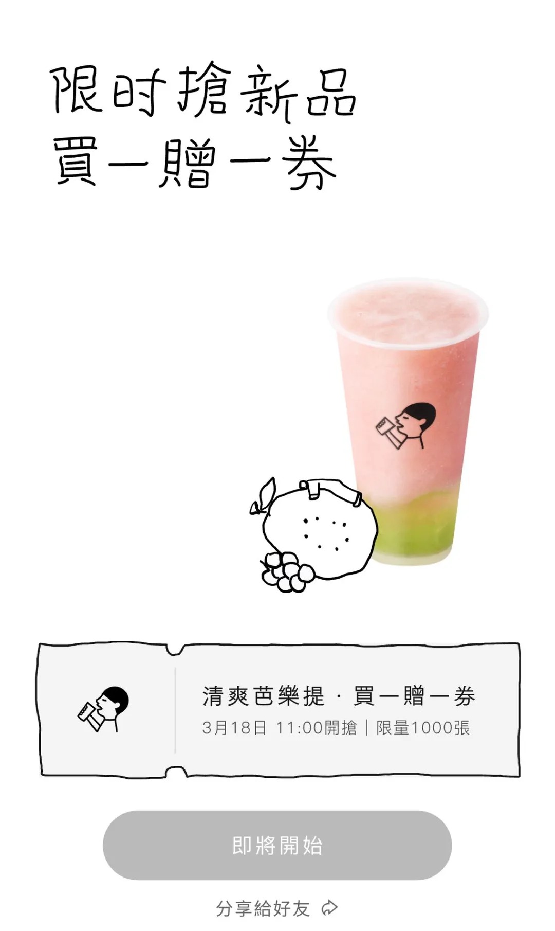 【點新聞報道】喜茶於3月19日推出芭樂新品,今日(18日)早上11時起,入heytea APP可領取新飲品買一送一券,限量1000張,領完即止。
