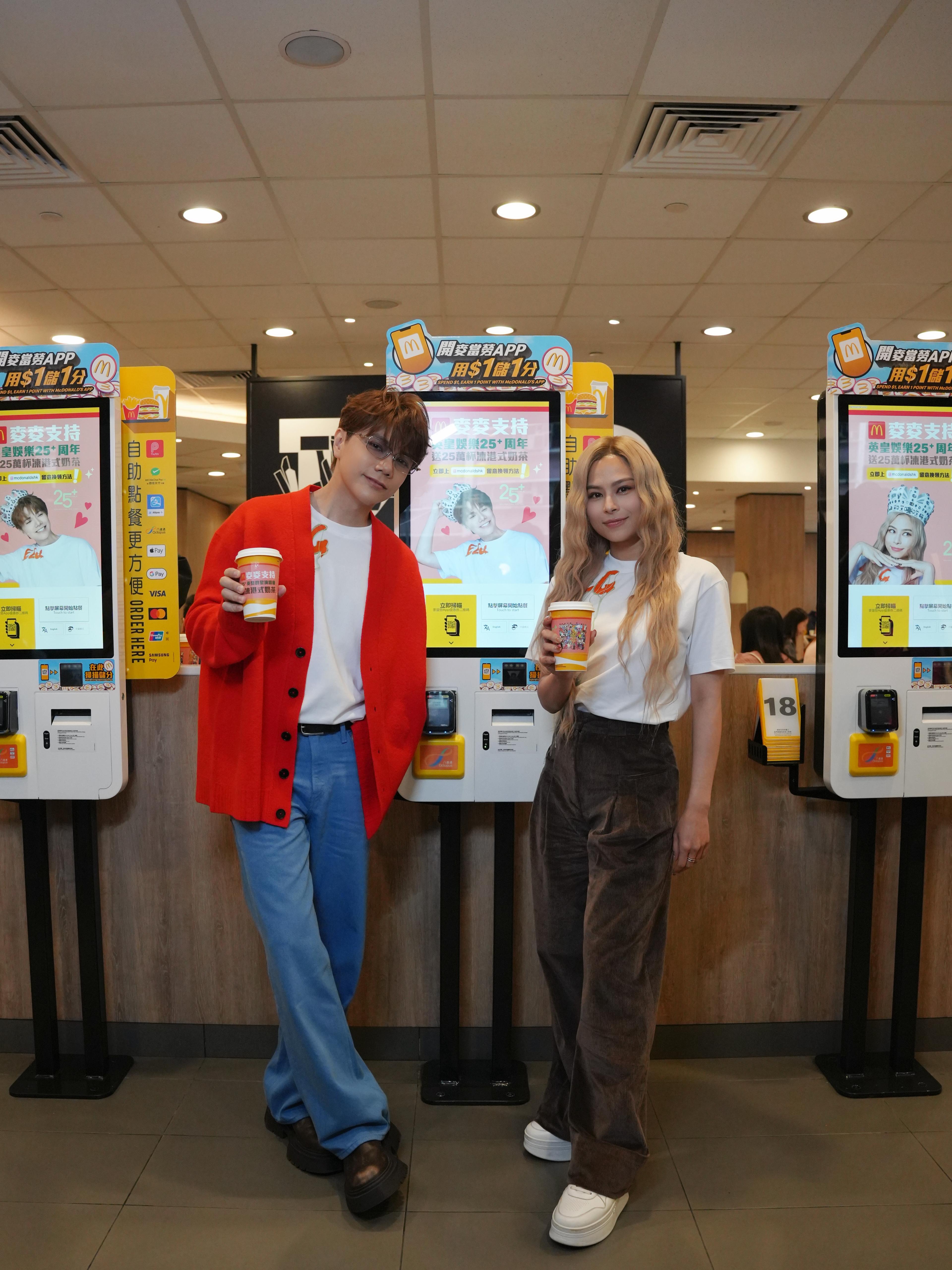【點新聞報道】為迎接「英皇娛樂25+ HAPPY BIRTHDAY慶典」,繼日前的「英皇娛樂25+ Moving Cantonpop Disco電車派對」,宣傳活動繼續浪接浪。昨日(17日)輪到金牌經紀人霍汶希(Mani),率領張敬軒(軒仔)及Gin Lee李幸倪齊齊快閃麥當勞,化身「奶茶大使」落區同粉絲近距離接觸,場面熱鬧。三人同為英皇娛樂25+慶典造勢,與眾同樂!