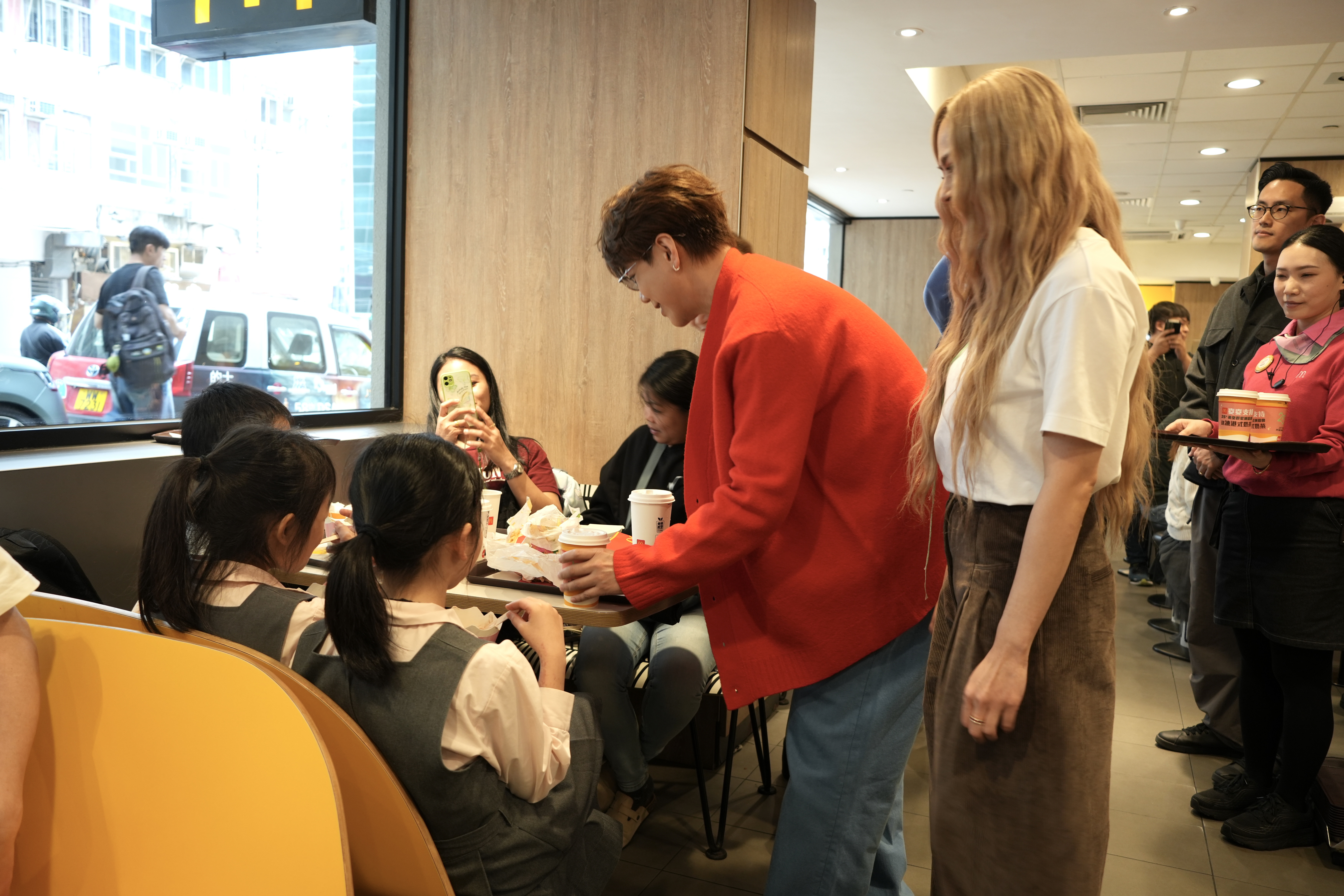 (有片)張敬軒Gin Lee快閃麥當勞派奶茶 霍汶希一句KO小朋友引爆笑點