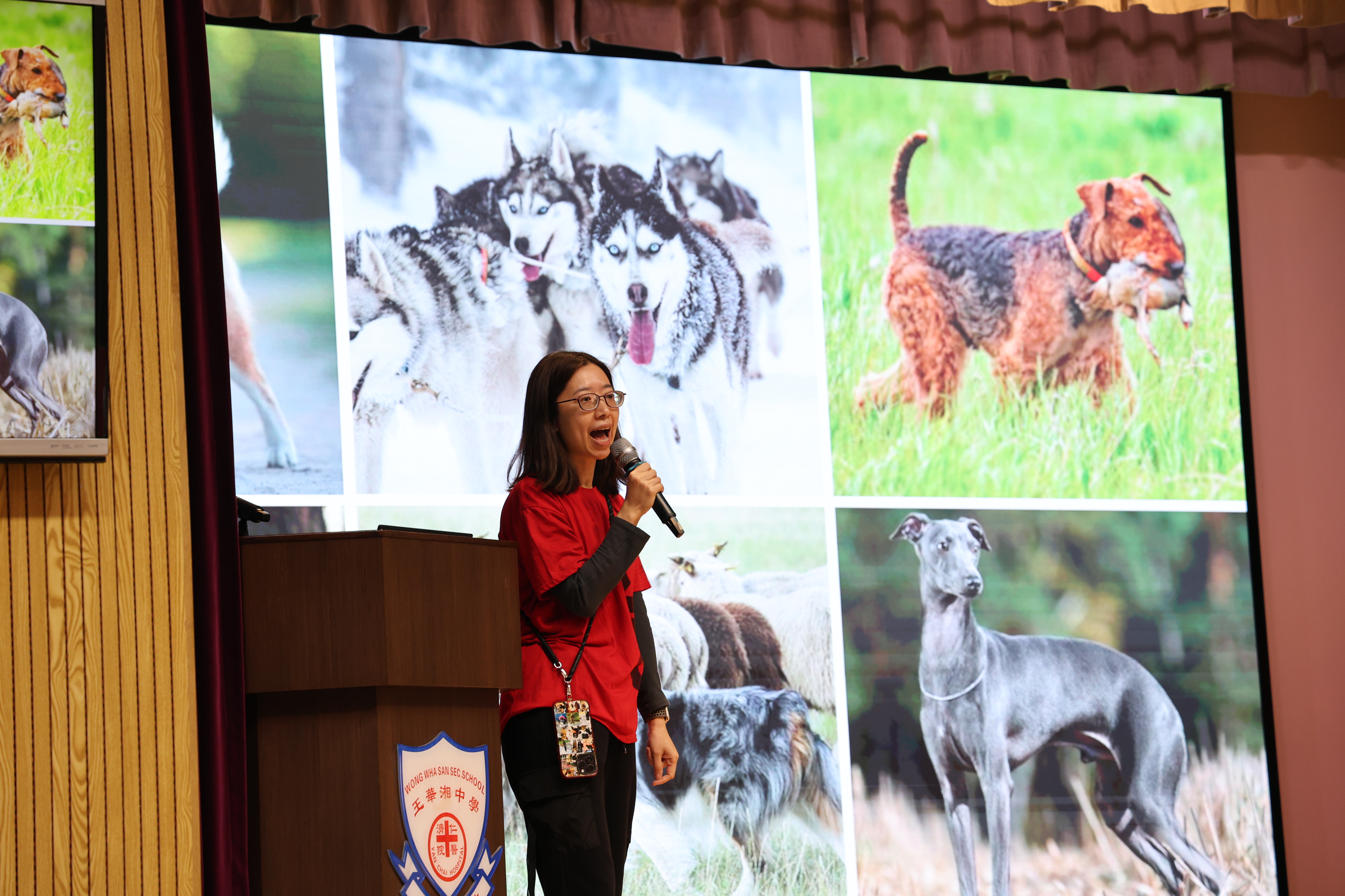 活動以「接觸」為主題,旨在透過動物輔助介入服務,幫助學生紓解學習壓力、提升身心健康,並預防情緒困擾或隱蔽傾向。開場由專業講者介紹與狗隻相處的正確要點,包括如何安全接近、撫摸及溝通,讓同學們學會尊重動物界限。隨後,STAR和JUNE在訓導員引領下,展現多項專業社工狗狗技能表演:從簡單的「坐下」、「握手」到更複雜的「取物」、「安撫」動作,牠們溫順聽話、眼神充滿關愛,贏得全場陣陣掌聲與驚嘆。