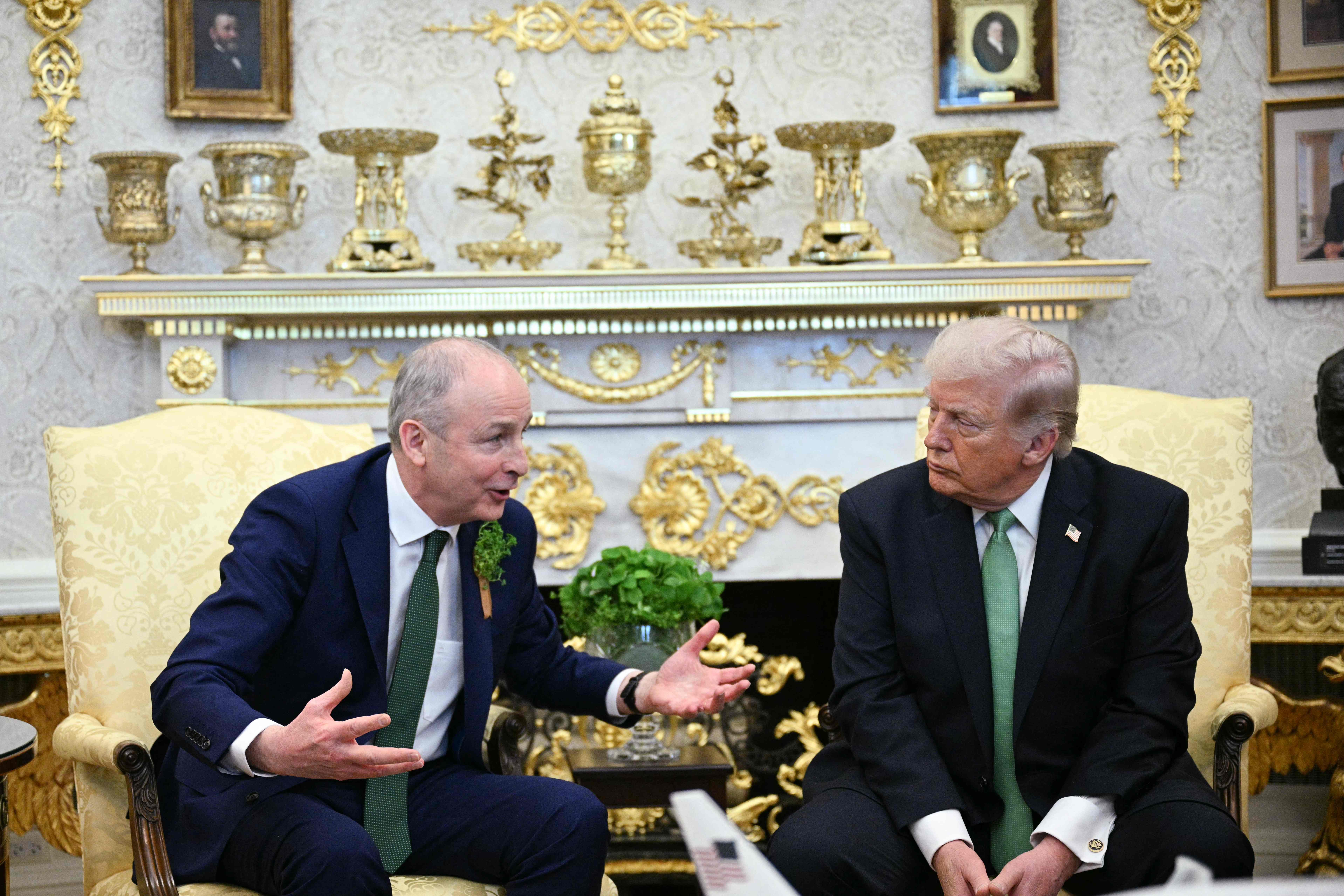 【點新聞報道】當地時間3月17日,美國總統特朗普在白宮會見到訪的愛爾蘭總理米歇爾·馬丁。