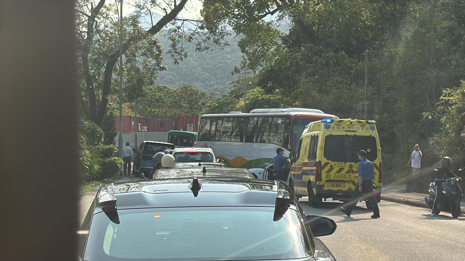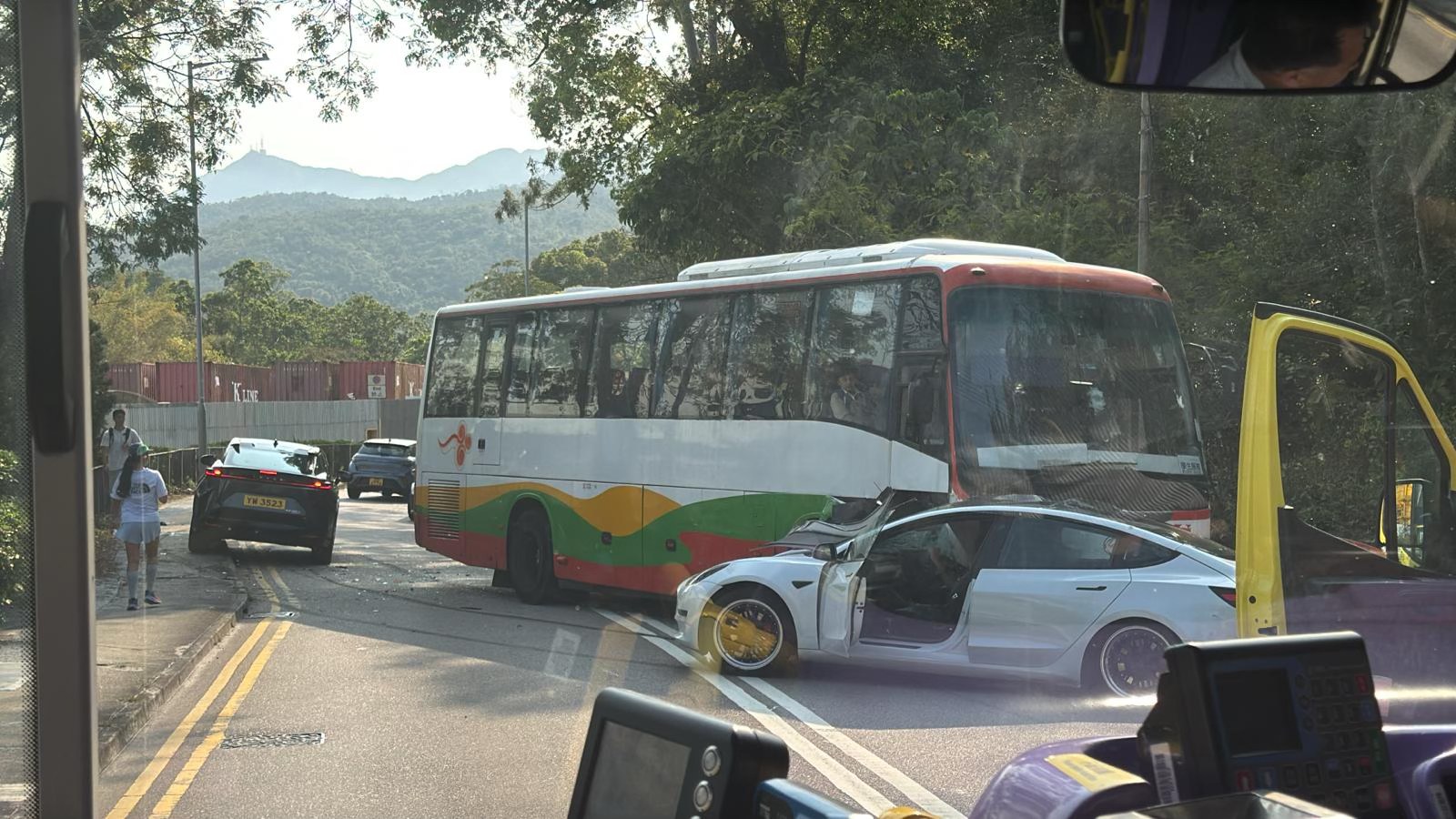 (有片)西貢旅遊巴與兩輛私家車相撞 一名司機受傷送院