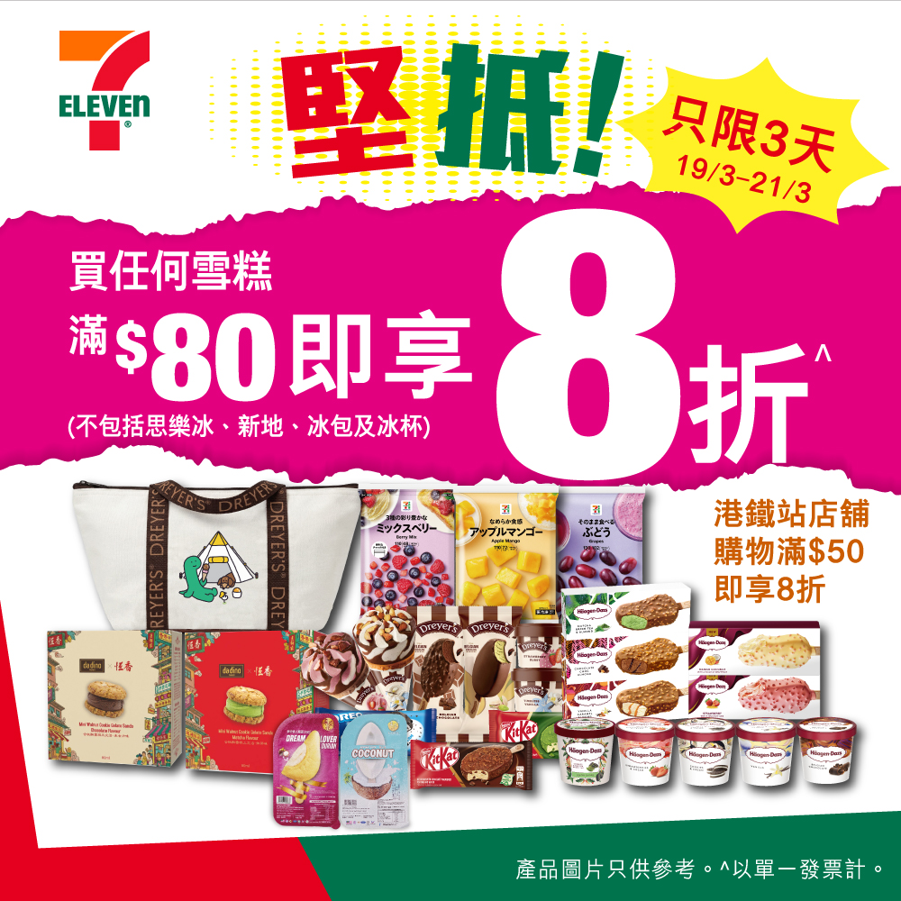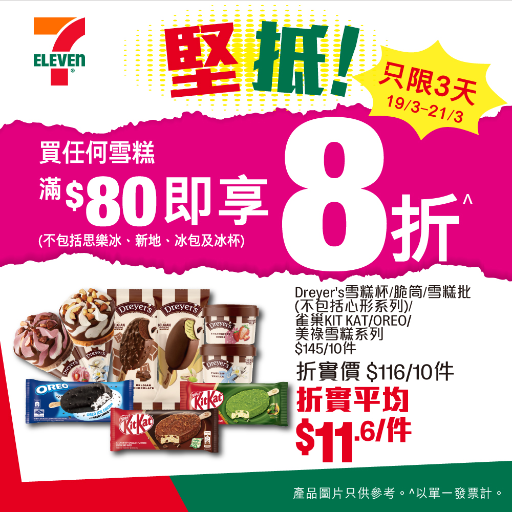 只限3天!7-Eleven雪糕滿$80享8折