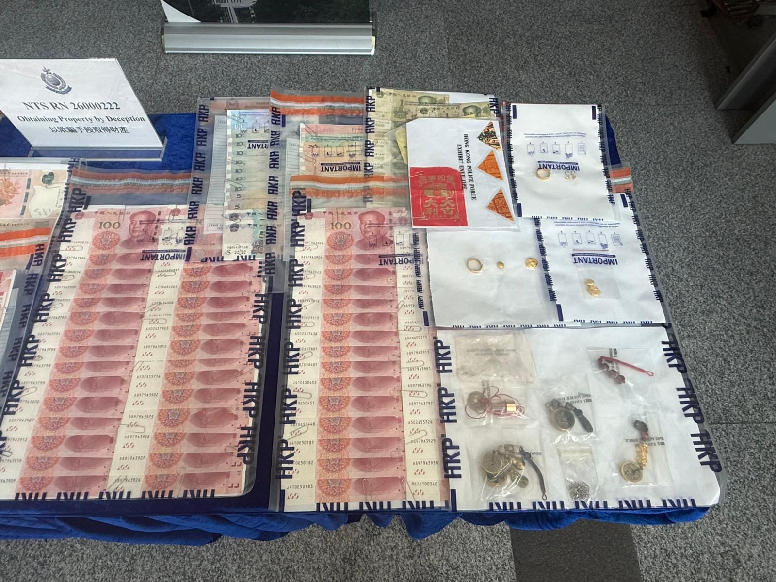 新界南總區刑事部人員於昨日展開拘捕行動,在土瓜灣一帶截查2名非法入境的內地女子,年齡分別為59歲及60歲。警方在其身上搜獲大量現金、外幣、金飾,以及一些可用作祈福儀式的工具,懷疑與上述騙案有關。警方其後以「以欺騙手段取得財產」罪及「非法入境」罪名拘捕兩人。目前所有被捕人士仍被扣留調查,不排除稍後會有更多人被捕。
