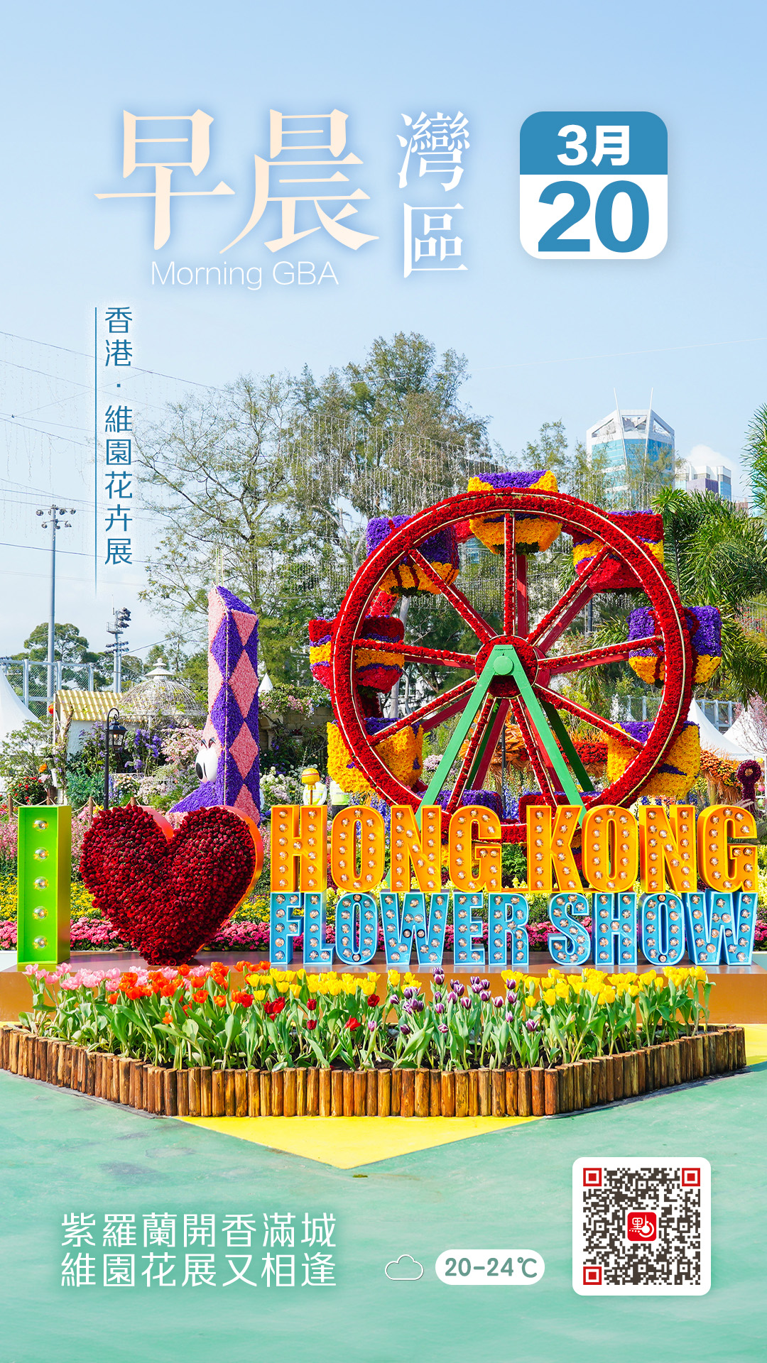 【點新聞報道】一年一度的香港花卉展覽又來了!由今日(20日)至本月29日,一連10天在維多利亞公園舉行。本屆展覽以花姿優雅、香氣馥郁的紫羅蘭為主題花,主題定為「花語尋『香』——細味城市特色」,預計將吸引數十萬市民及遊客到場欣賞。快跟隨點新聞的腳步,一同探索這場春日花宴吧!