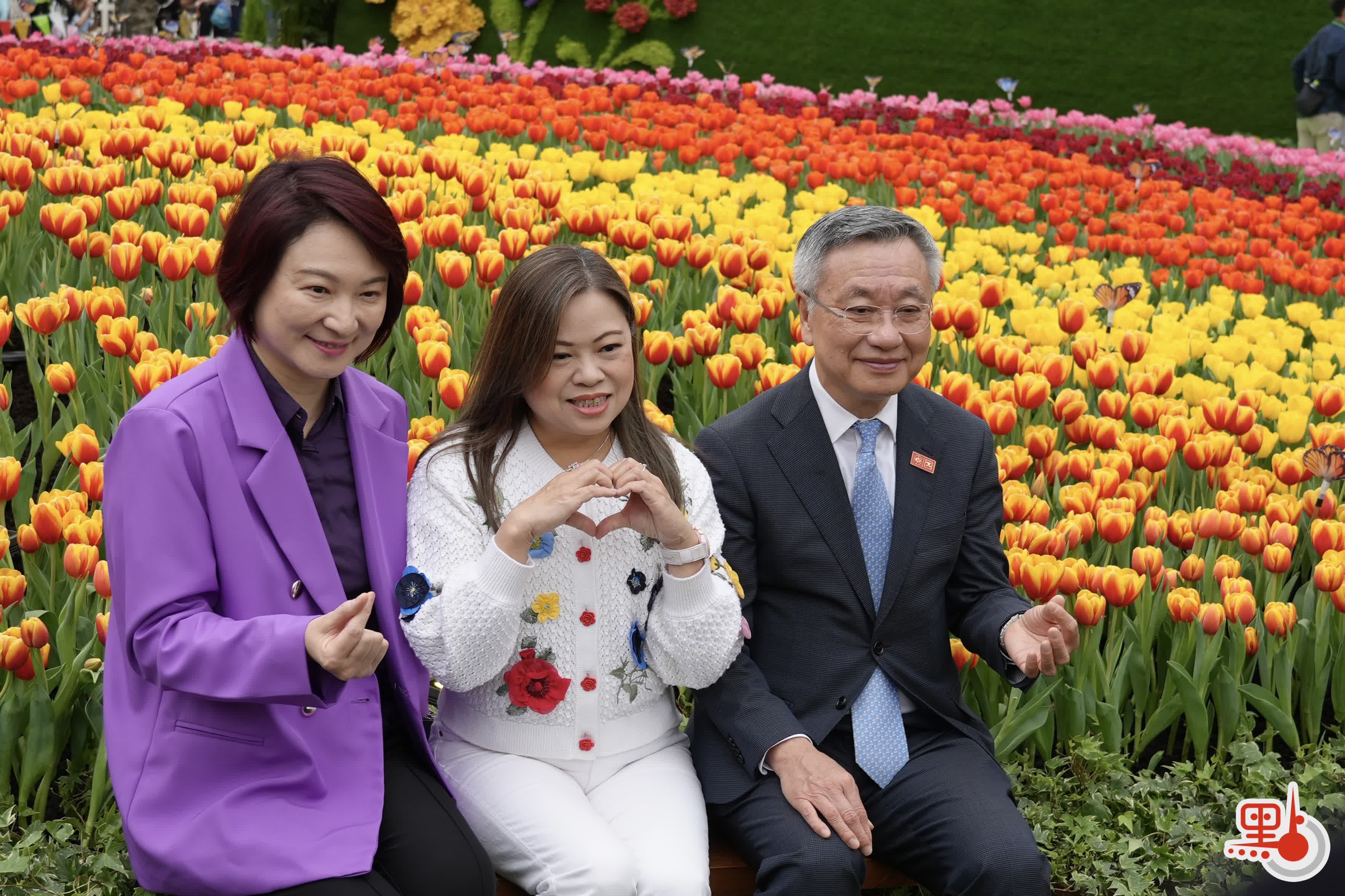 典禮後,各嘉賓隨即遊覽花展,李慧琼、羅淑佩及羅啟華在巨大花卉前比心合影,盡現親民一面。