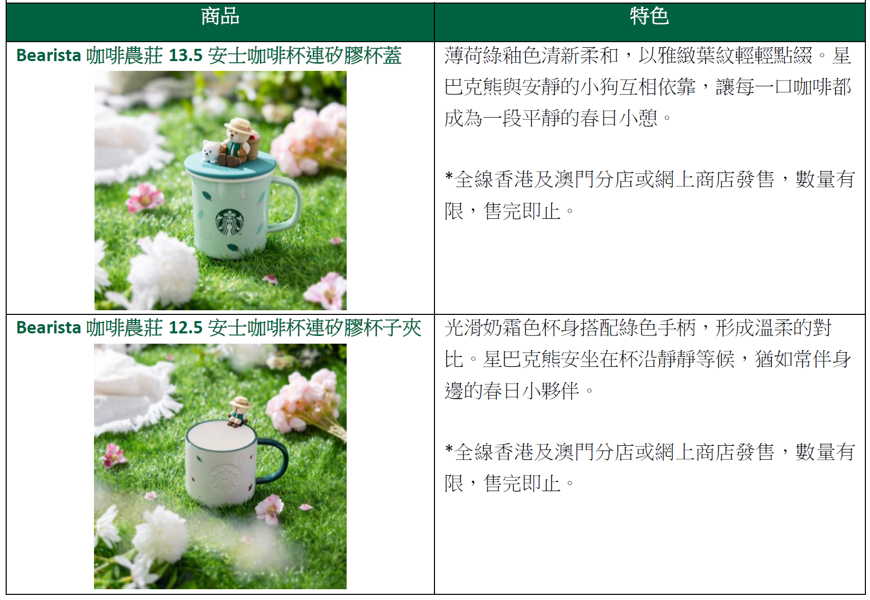 以櫻花粉與薄荷綠點亮春日,「Bearista咖啡農莊」系列將於3月31日起登場。五款商品載着初春暖陽般的柔和氣息,成為你的春日好夥伴,陪你慢慢享受你喜愛的咖啡。