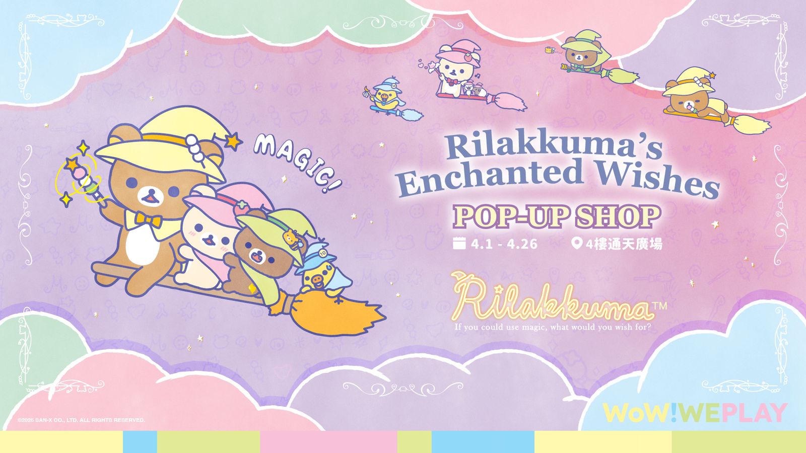 來自日本的輕鬆小熊即將施展神奇魔法,於朗豪坊四樓通天廣場揭開一座充滿甜蜜夢幻氣息的魔法樂園的序幕。《Rilakkuma's Enchanted Wishes POP-UP SHOP》魔法願望限定店將於4月1日至26日於朗豪坊舉行,全球首度登場!