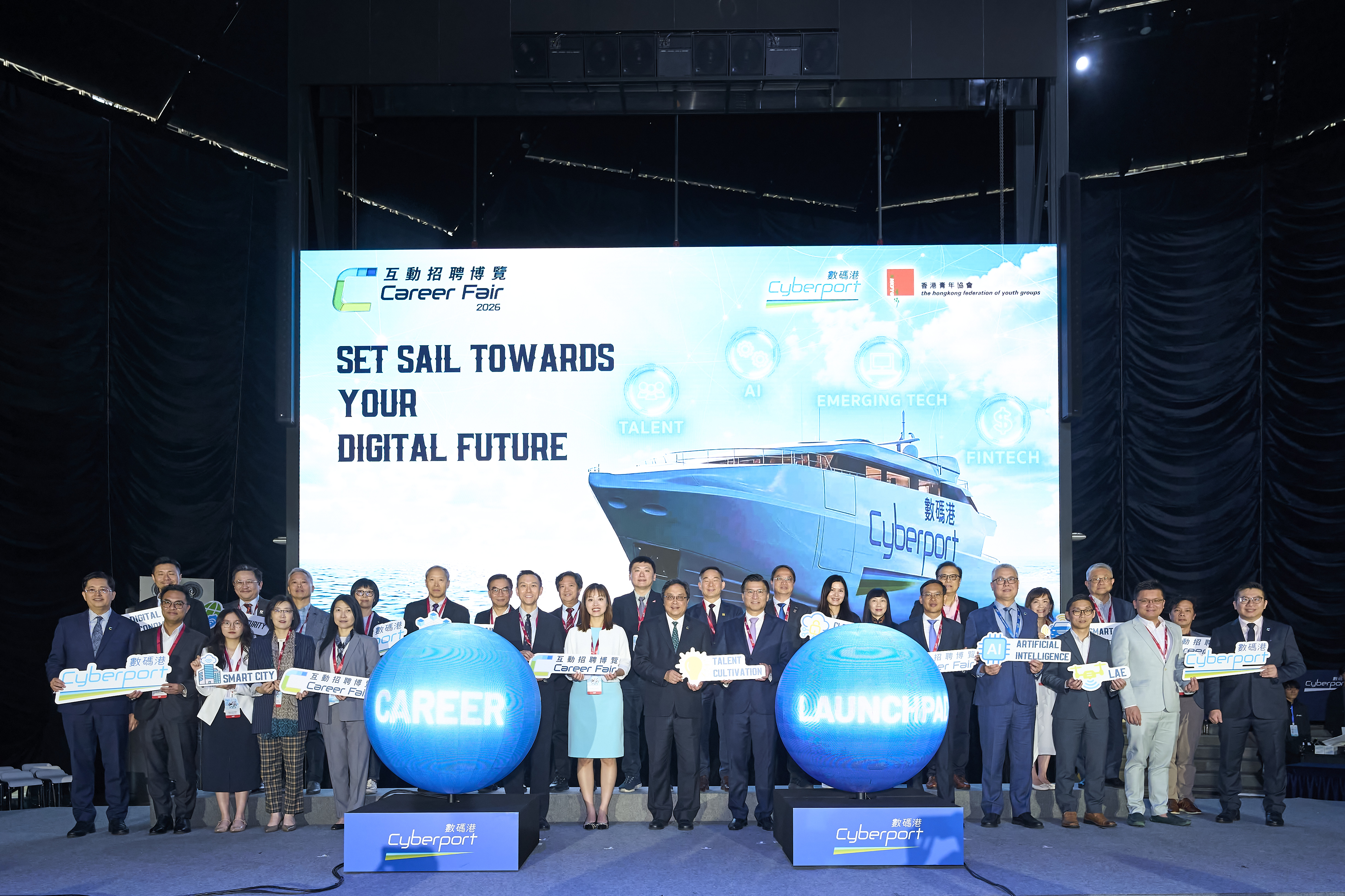 【點新聞報道】數碼港年度旗艦活動之一「數碼港互動招聘博覽2026」3月20日揭幕,由數碼港主席陳細明及數碼港行政總裁鄭松岩等人擔任開幕禮主禮嘉賓,標誌着為期兩天的創科人才盛事正式展開。招聘博覽今年以「Set Sail Towards Your Digital Future」為主題,提供超過2000個創科職位,並首次引入多元互動體驗環節,包括百度智能駕駛介紹、無人機足球比賽等,讓參加者全面了解21個炙手可熱的創科行業的就業前景,包括人工智能(AI)、大數據、低空經濟等,擴闊他們對新興創科產業的職涯視野。