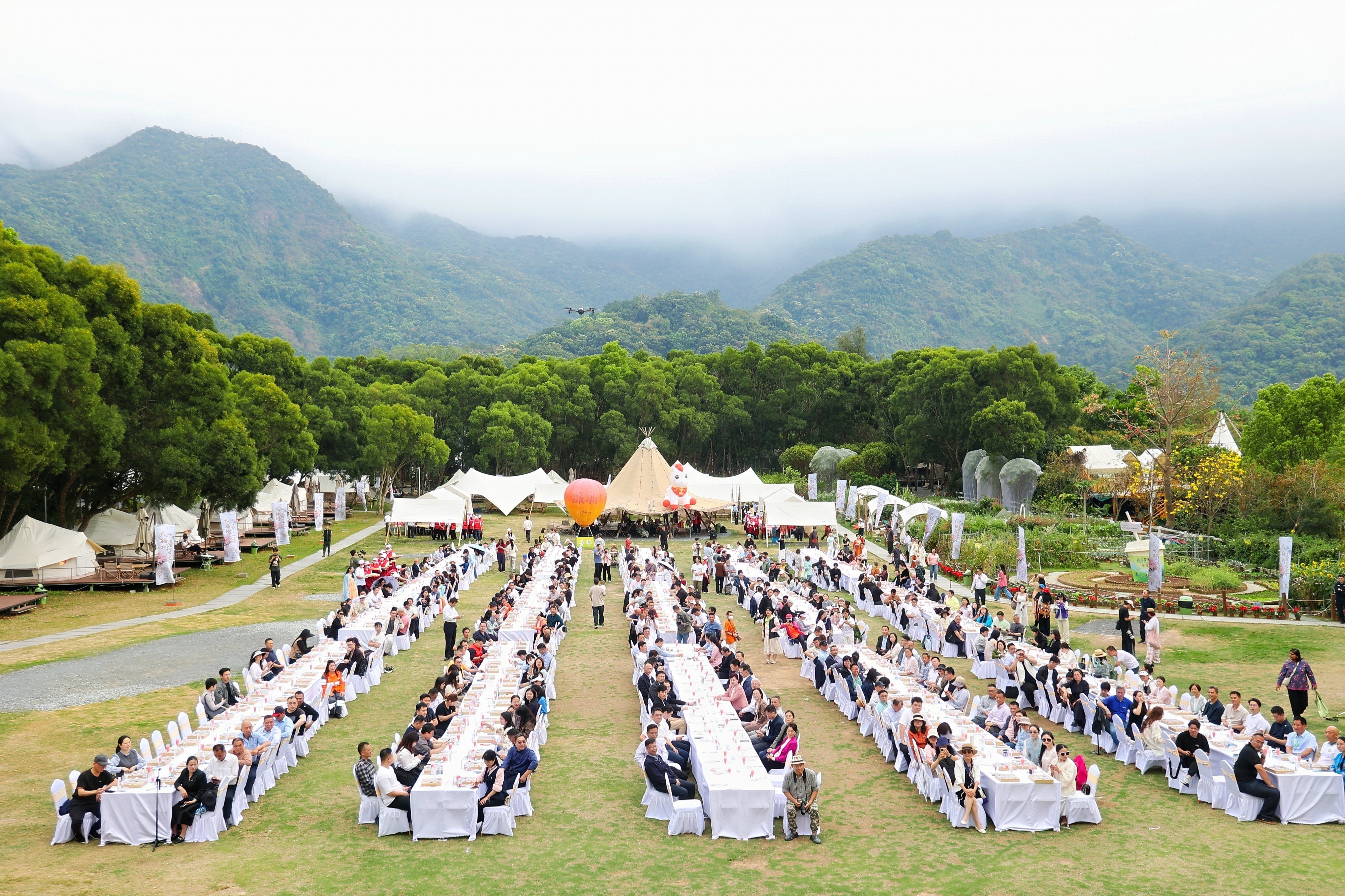 【點新聞報道】春日踏青正當時,深圳市首屆大梧桐春花宴近日在羅湖區望桐露營地、梧桐山河碧道詩意啟幕。步入梧桐山河碧道,宮粉紫荊沿河盛放,與遠處梧桐山上的毛棉杜鵑遙相呼應。碧道一側,「梧桐健康飲食街」與「梧桐藝術文化街」熱鬧開市,素食市集上,精緻的素食點心、創意素食引人駐足;沿河而行,民樂悠揚,古風舞蹈翩然上演,宋韻巡遊隊伍穿行其間,為春日山野增添了幾分古雅意趣……本次活動以花為媒、以素會友,推出千人素食長桌宴開席、直升機低空花遊雲端賞花、碧道露營、春日市集、文化展演一站式打卡活動,打造沉浸式春日文旅盛宴,吸引不少港人前往。