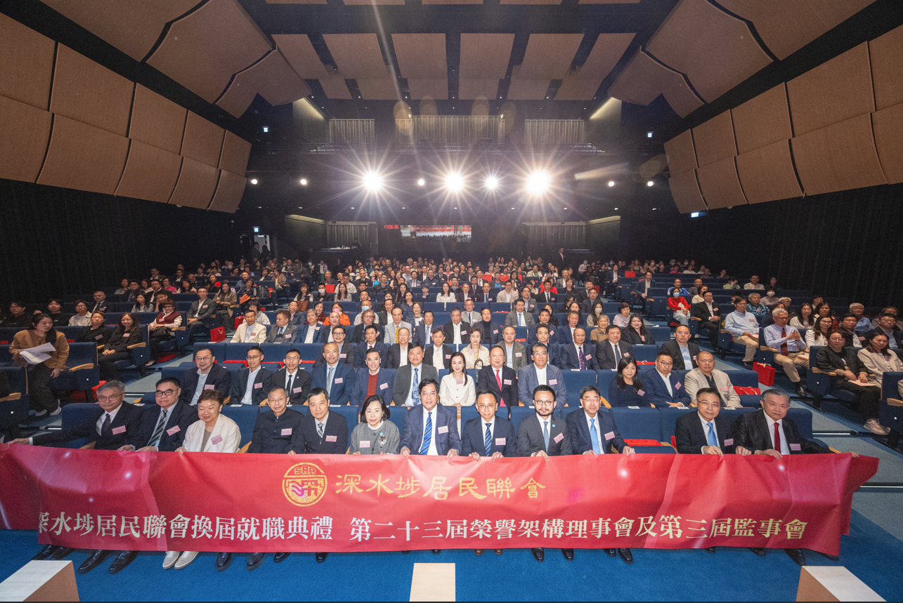 【點新聞報道】深水埗居民聯會第二十三屆榮譽架構、理事會及第三屆監事會就職典禮今日(21日)舉行,署理財政司司長黃偉綸、民政及青年事務局局長麥美娟、深水埗民政事務專員王浩宇,以及紫荊勳賢曾鈺成、港區全國政協常委高永文及王惠貞擔任主禮嘉賓;同場亦有立法會議員鄭泳舜、陳仲尼等人。