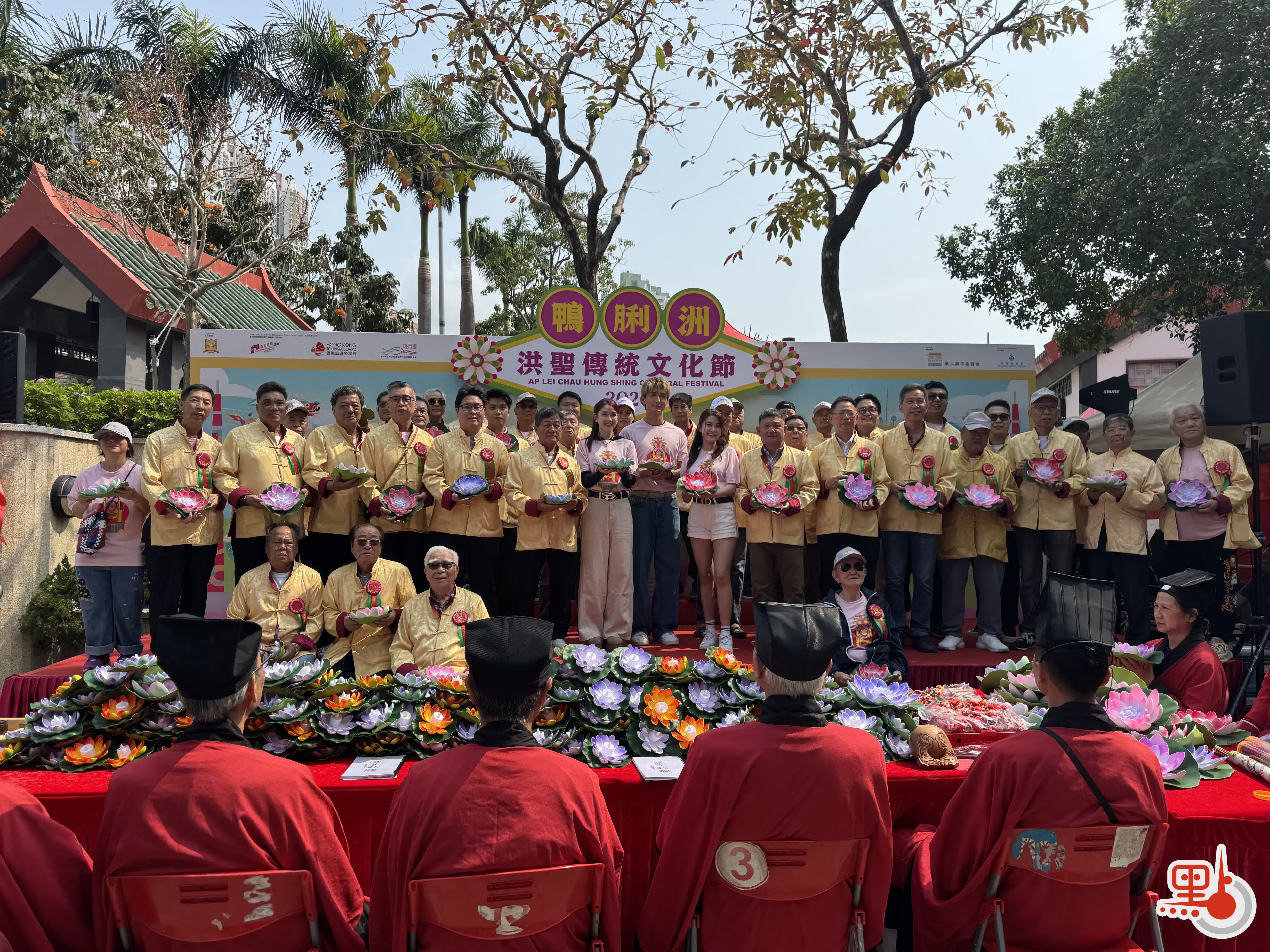 洪聖誕慶典已列入香港非物質文化遺產代表作名錄,各項活動都承載了居民的心靈寄託,祈求風調雨順、境內安寧。上午10時半,祈福放水燈儀式開始,三位同樣成長或現居於南區的歌手藝人張馳豪、潘靜文、江嘉敏是首次參與鴨脷洲洪聖傳統文化節,同眾多嘉賓一起放水燈,祈求工作順風順水。