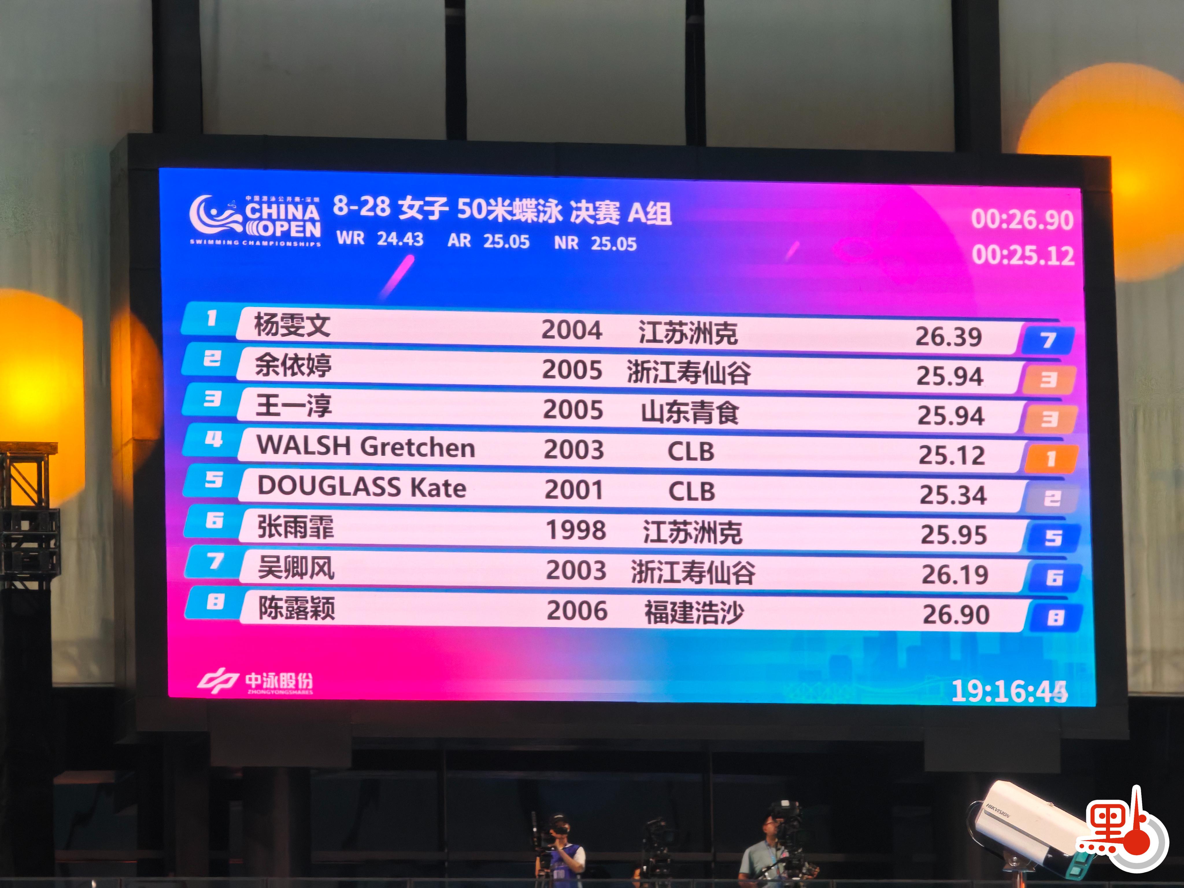 (有片)中國游泳公開賽丨張雨霏50蝶憾失獎牌:期待亞運會表現