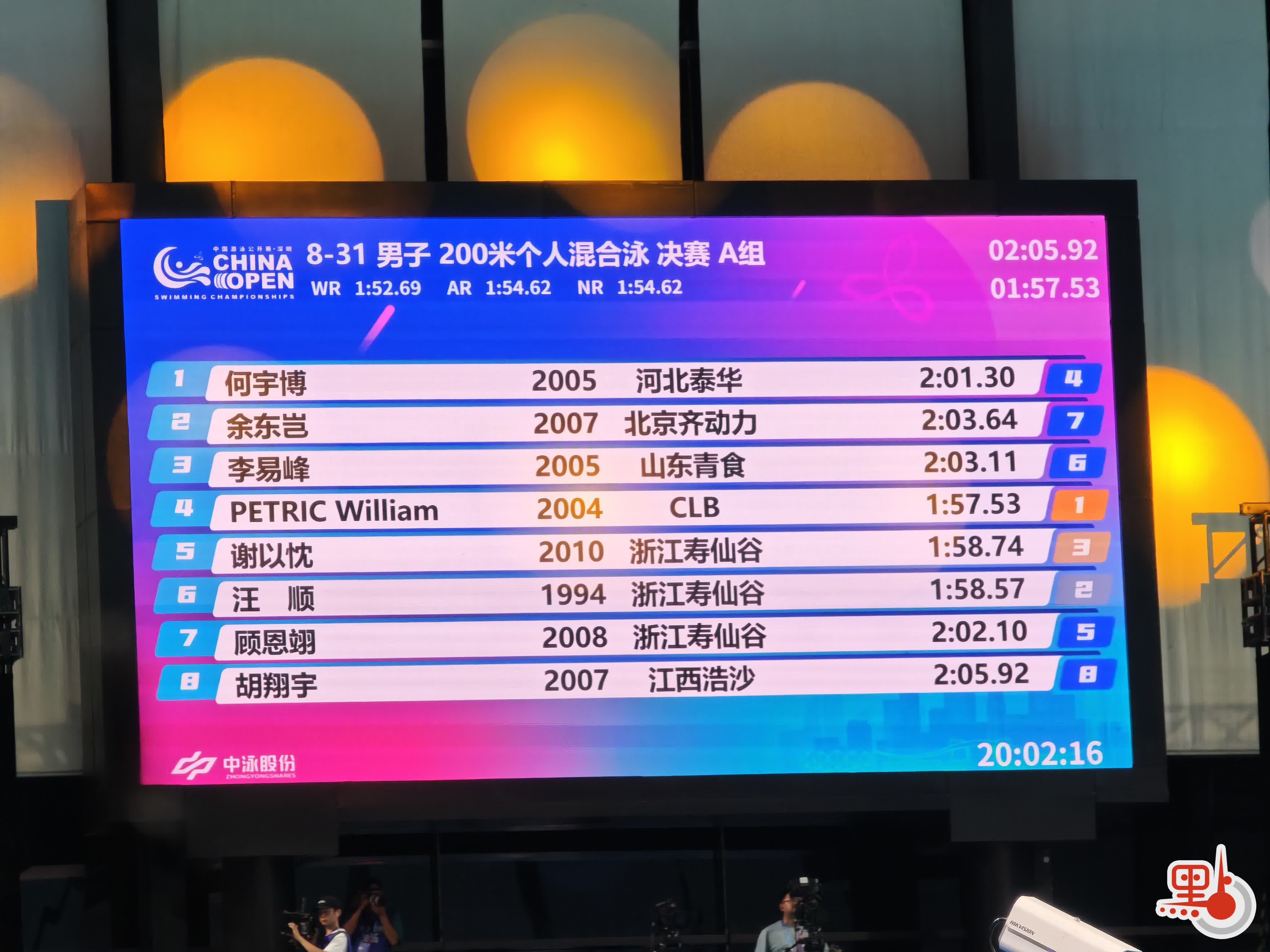 【點新聞報道】3月22日,2026年中國游泳公開賽迎來收官之日,汪順也在這一天迎來此次比賽的唯一項目:男子200米個人混合泳。最終,威廉佩特里克獲得冠軍,汪順以1分58秒57的成績獲得第二名,浙江隊謝以忱獲第三名。