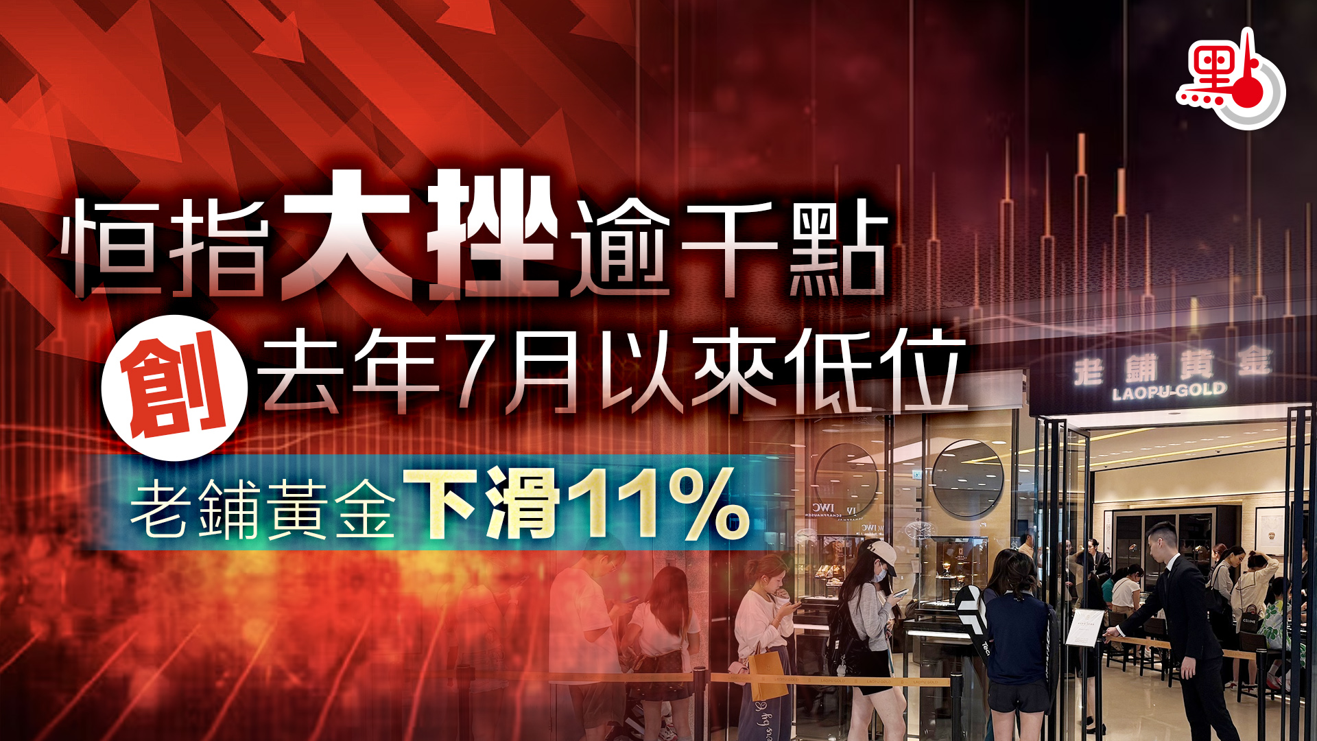 恒指大挫逾千點 創去年7月以來低位 老鋪黃金下滑11%