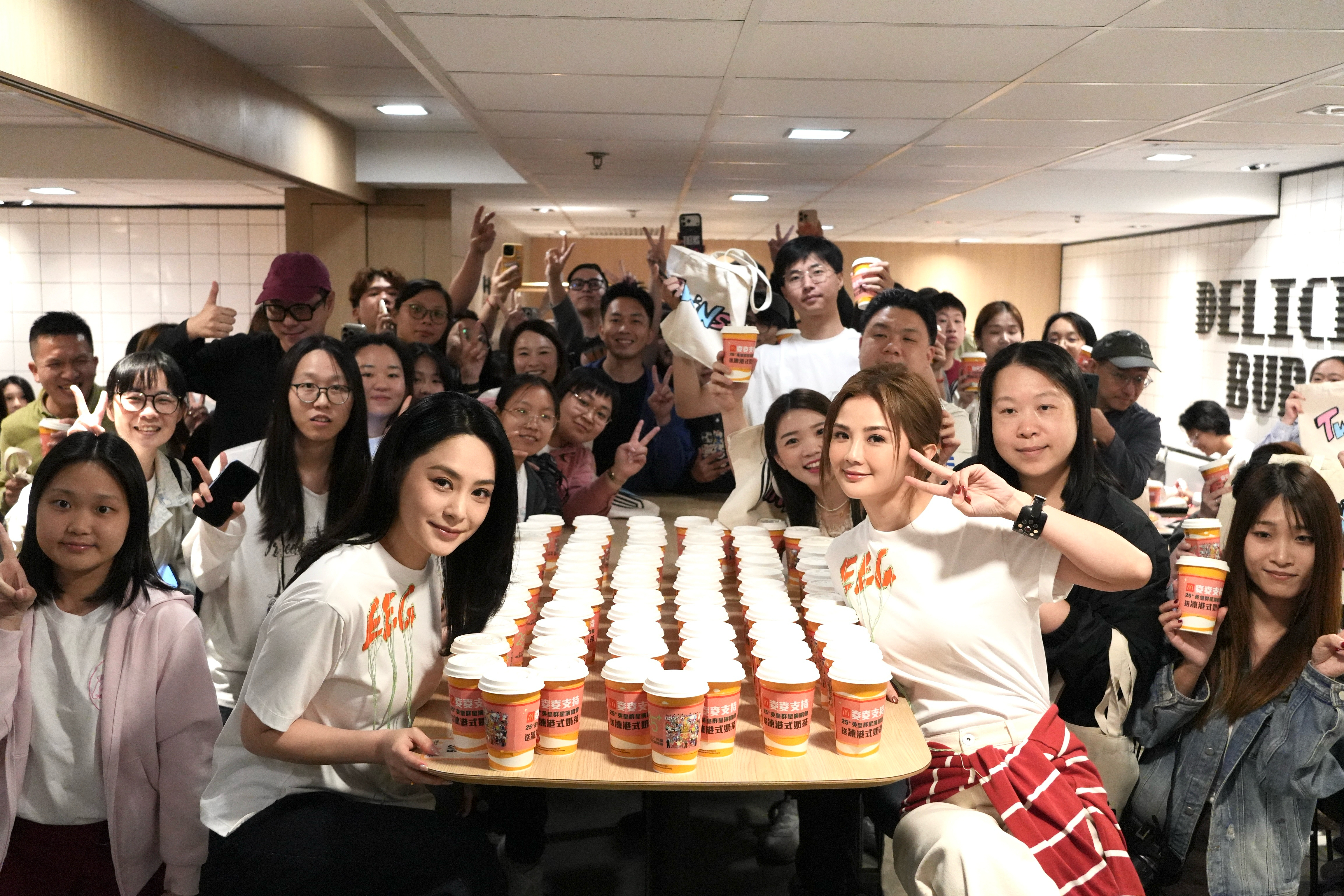 活動下午1時開始,但已經有fans早上9時,即預早4個小時於餐廳內坐定定等候,餐廳方面亦貼心地劃了一個區域舉行這次活動,範圍可容納近百fans,不過場面仍猶如等開show般墟冚。當阿Sa蔡卓妍及阿嬌鍾欣潼一現身,全場即刻陷入瘋狂狀態,歡呼聲大到幾乎拆天,二人隨即發揮親民本色,邊行邊繞場一周派奶茶,粉絲個個舉起手機瘋狂自拍,爭取機會跟偶像零距離接觸。