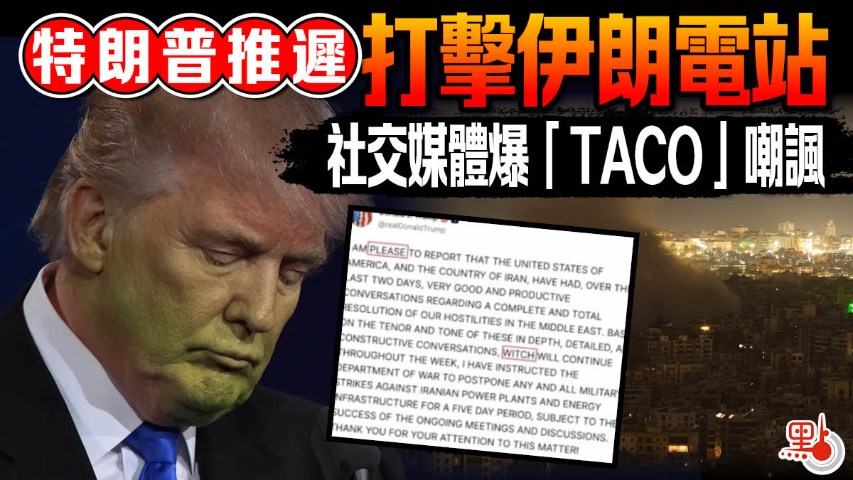 特朗普推遲打擊伊朗電站 社交媒體爆「TACO」嘲諷