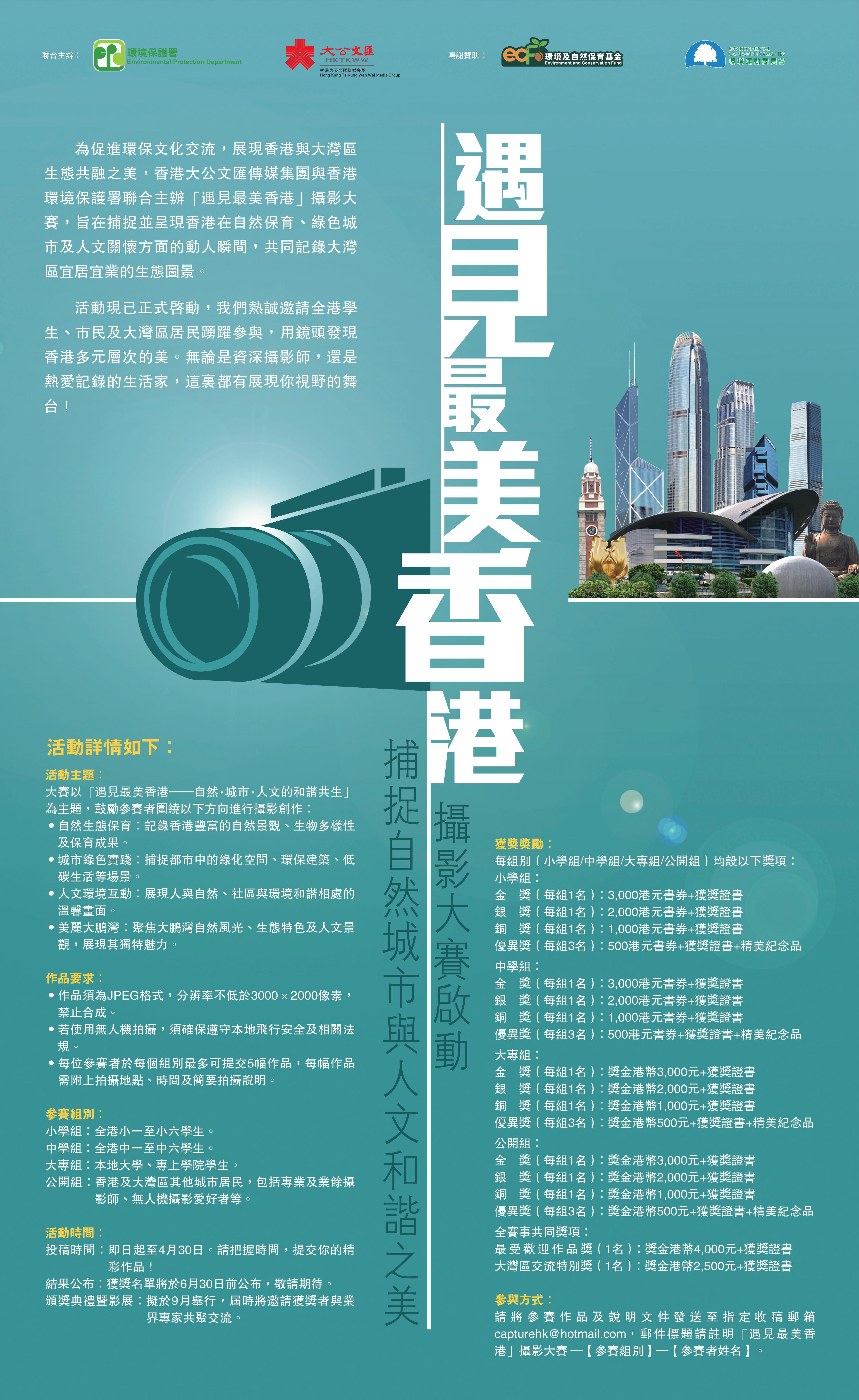 為促進環保文化交流,展現香港與大灣區生態共融之美,香港大公文匯傳媒集團與香港環境保護署聯合主辦「遇見最美香港」攝影大賽。