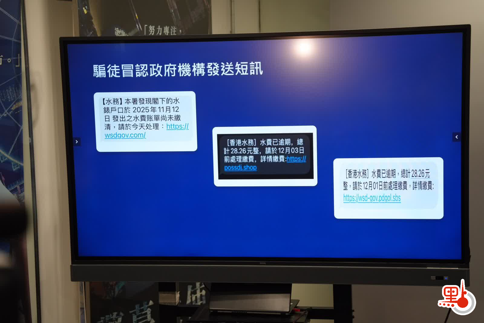 【點新聞報道】一名活躍於本港的詐騙集團涉於今年1月至3月期間,假冒水務署向市民發送附有虛假連結的釣魚短訊,聲稱需要處理賬戶事宜或逾期賬單,以騙取市民的信用卡資料進行網上大額購物。警方經深入調查包括翻查「銳眼計劃」下的閉路電視錄像蒐證,昨日(24日)採取行動瓦解該個犯罪集團和拘捕主腦在內的4名男女,以及搗破集團位於觀塘一工業大廈單位的儲存贓物、發送釣魚短訊及操控詐騙系統的運作中心,初步相信該集團與25宗同類詐騙案有關,涉款逾80萬元。