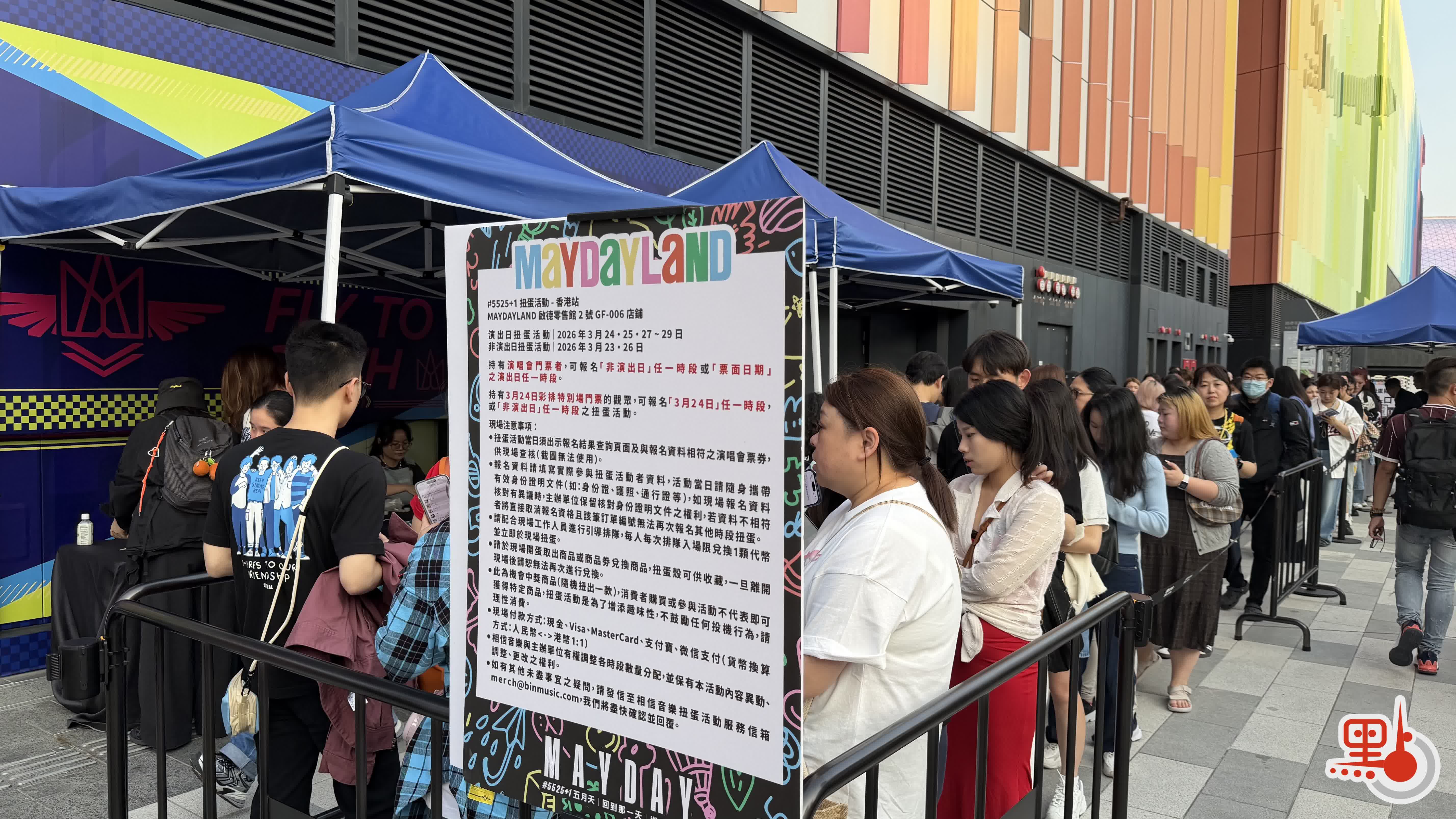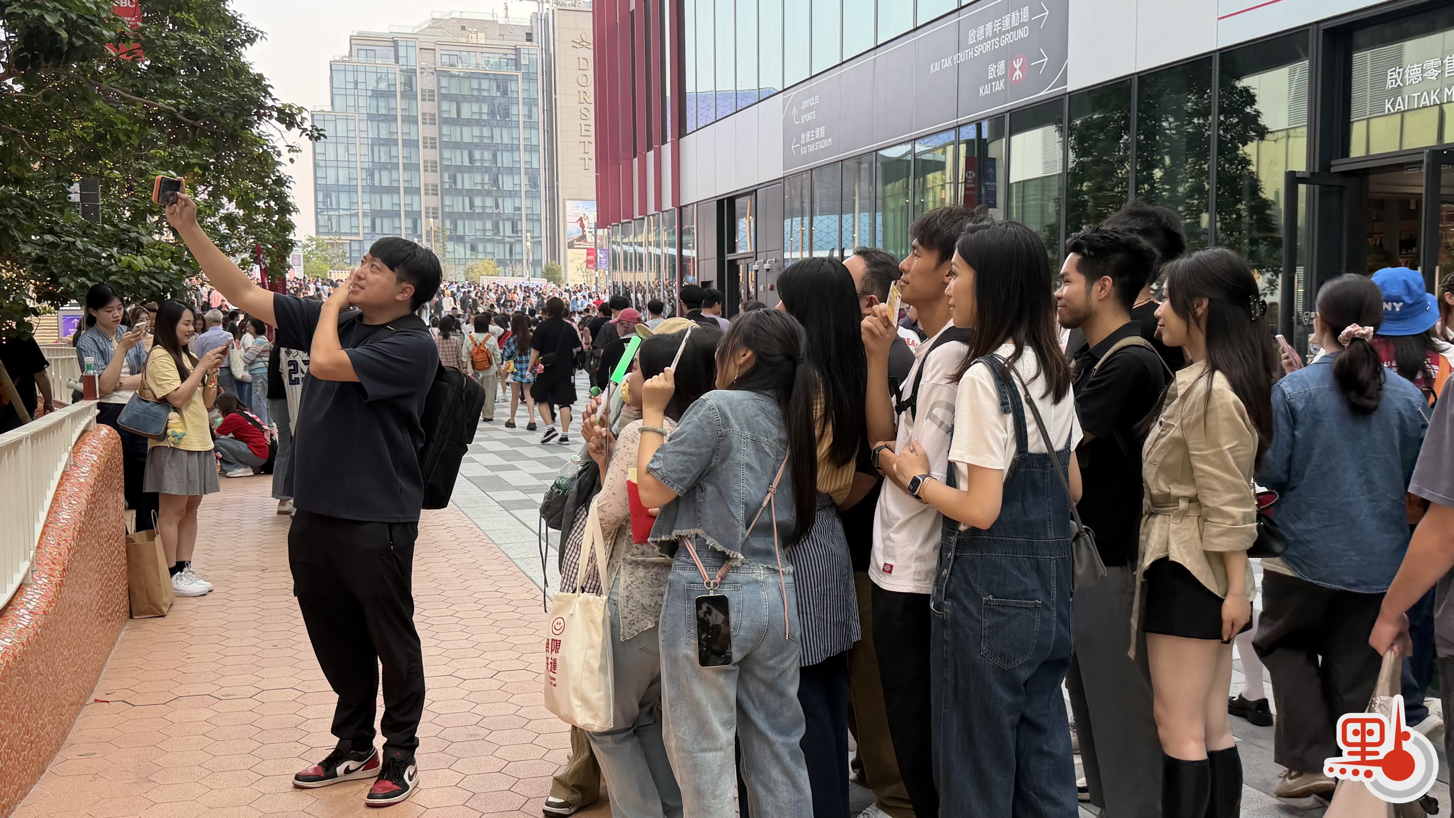 【點新聞報道】華語天團五月天於今日(25日)在啟德主場館帶來首場生日限定派對——2026五月天《#5525+1 回到那一天》25周年巡迴演唱會香港站·春暖花開版。下午5時許,已經有近千名歌迷抵達啟德場館,等待入場。書包掛滿盲盒掛件的歌迷透露,自己今早排隊4小時,在零售館花了數千元買周邊,以作紀念。