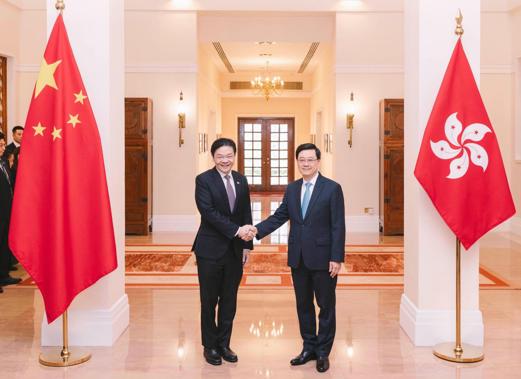 【點新聞報道】行政長官李家超今日(27日)在禮賓府與新加坡總理兼財政部長黃循財會面。黃循財於3月26日抵港,計劃展開為期3日的正式訪問。