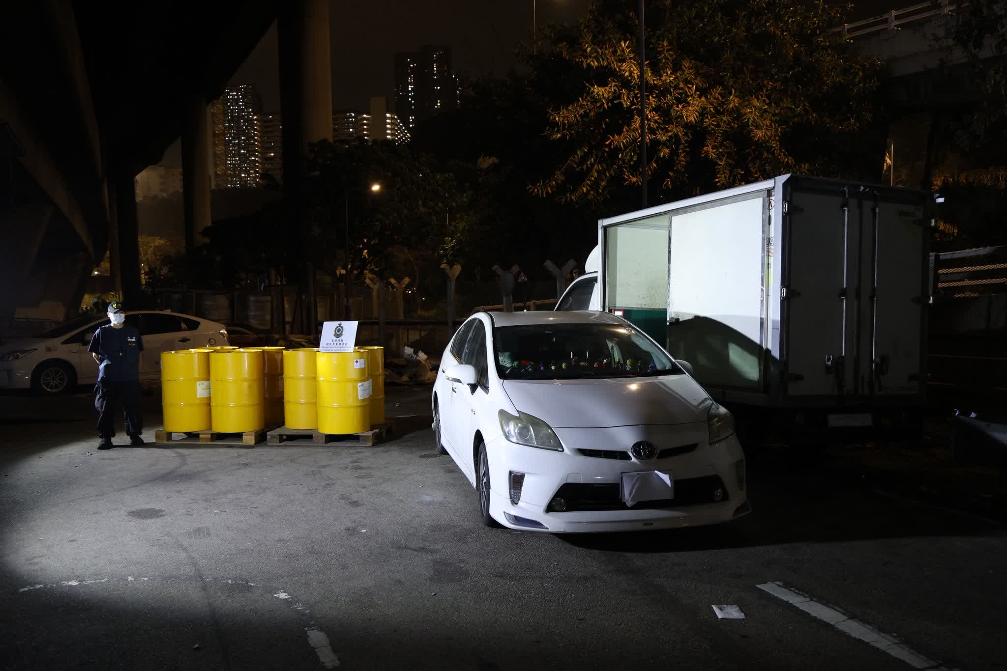 (有片)葵涌停車場闢非法加油站 海關檢1300多升電油拘2男