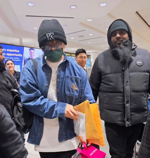 姜濤昨日(27日)已從香港機場出發,並於香港時間約今日(28日)上午11時抵達多倫多。姜濤抵埗後隨即在社交網絡報平安,同行還有姜媽媽,方便照顧寶貝仔兼睇騷。只見海量「薑糖」(姜濤粉絲)早已擠滿多倫多機場,姜濤一出閘即歡呼聲不斷,由多名黑人保安護駕。由於人數太多,姜濤差點淹沒在人海中,不過他仍有心接過薑糖們的禮物和信箋,十分有愛。