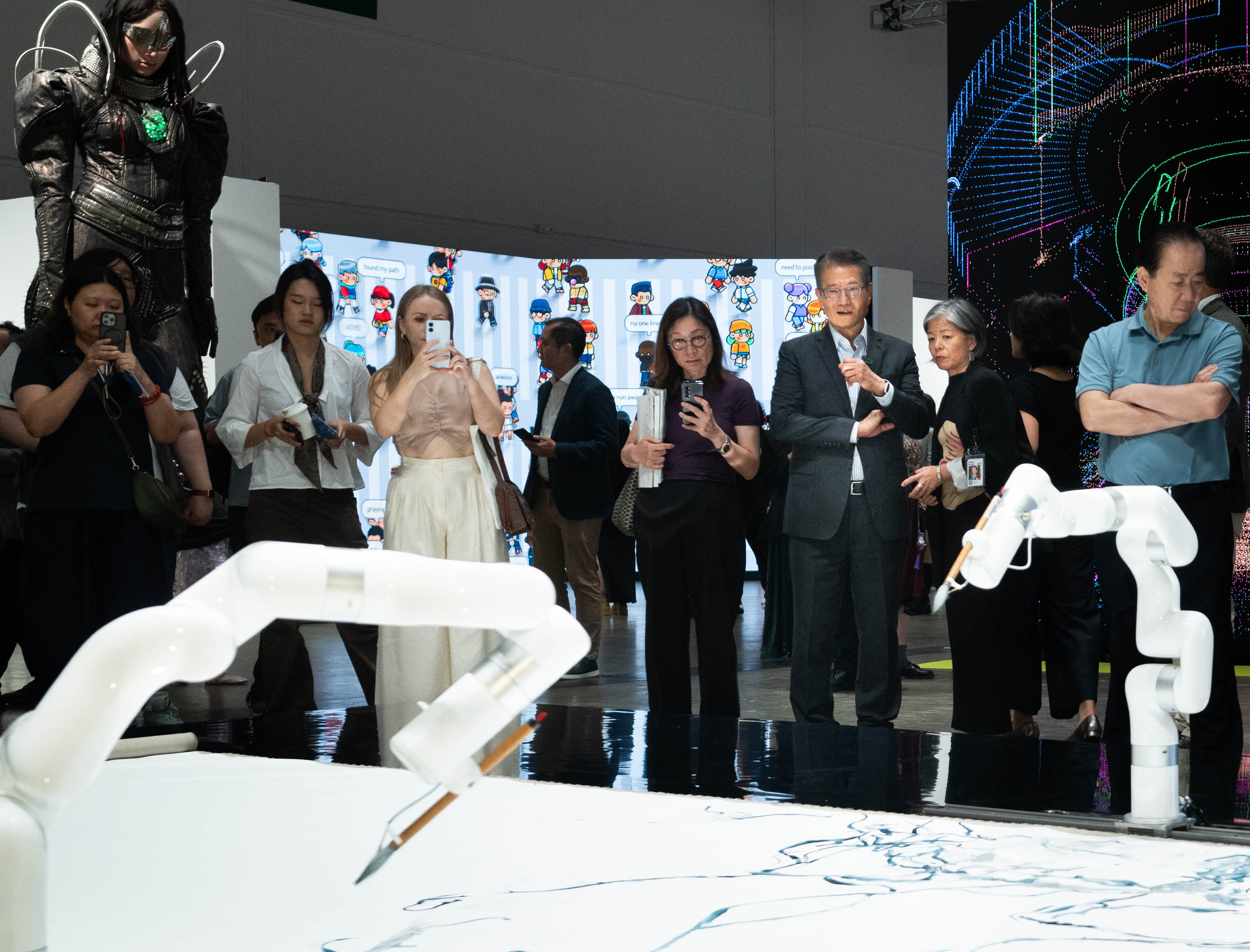 陳茂波昨日(28日)到訪Art Basel,據指多位參展藝術家和藝廊負責人告訴他今年的展會人流增加,藝術品銷情更為理想;他們亦欣賞香港的開放包容、連通中西的獨特文化氛圍,並視香港為拓展區域以至全球市場的理想平台。他又指,不少上周參加「裕澤香江」高峰論壇的家族辦公室的代表也表示,會在香港逗留較長時間,順道參觀緊接舉行的藝術展。
