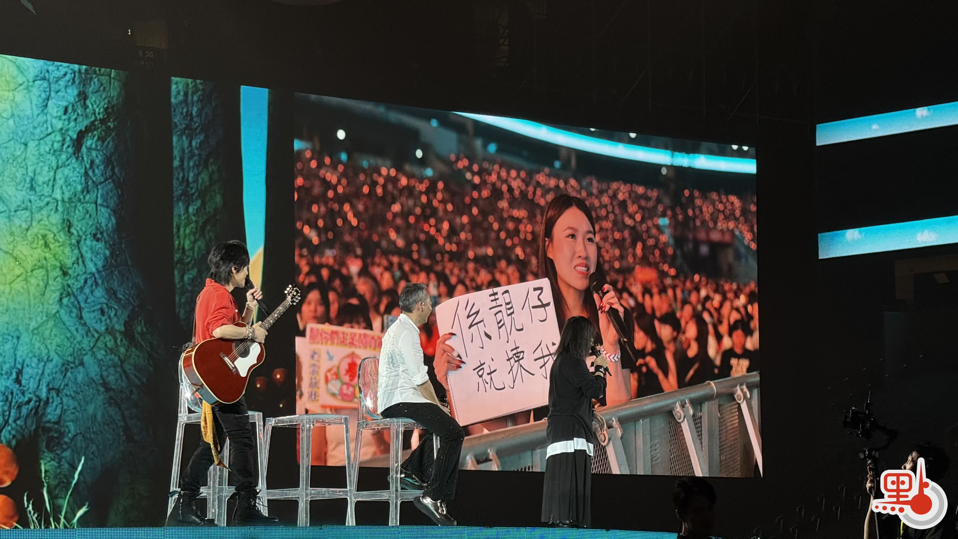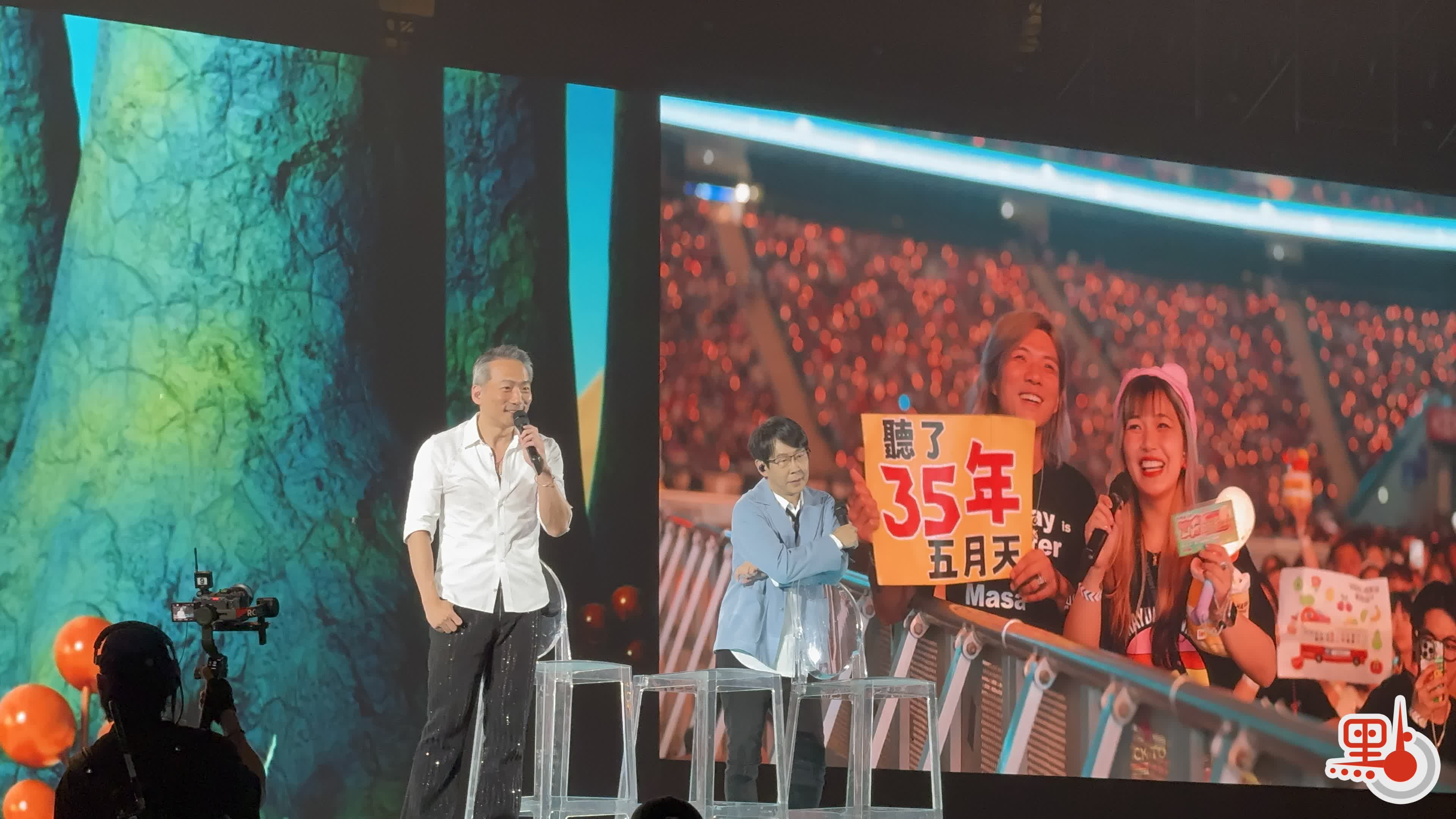 另一塊寫有「聽了35年五月天」的牌子則引起石頭好奇,他疑惑怎麼可能聽了35年,原來是兩位粉絲聽五月天的時間加起來合共35年,冠佑聞言開玩笑說:「那全場加起來應該有幾十萬年。」最後這兩位粉絲點唱《你說那C和弦就是...》,阿信忍不住大讚:「你們很會點!」