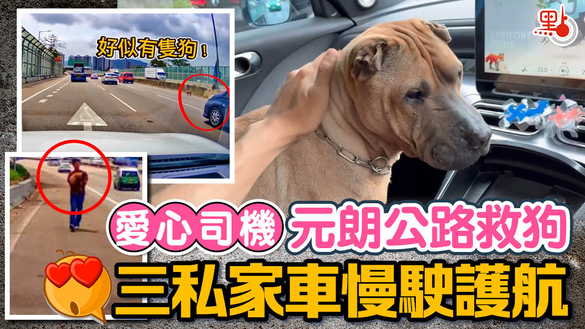 愛心司機元朗公路救狗 三私家車慢駛護航