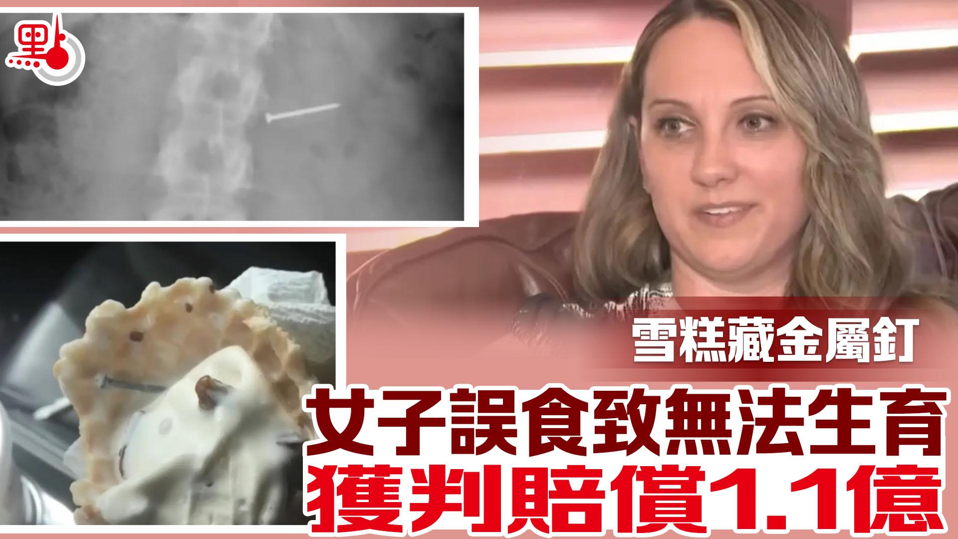 【點新聞報道】美國佛羅里達州發生一宗離譜食安事件,一名女子進食雪糕時,不慎吞下金屬釘和碎片,造成神經系統受損,甚至喪失生育能力。法院最終裁定雪糕店須賠償高達1,400萬美元(約1.1億港元)的天價賠償金。