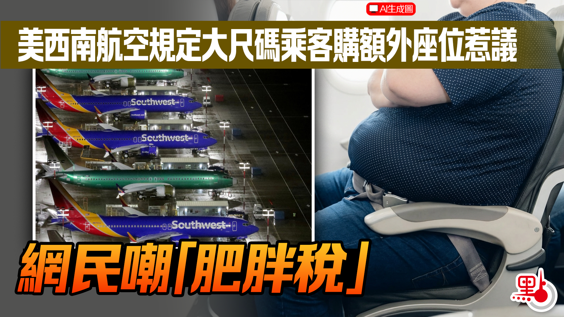 美西南航空規定大尺碼乘客購額外座位惹議 網民嘲「肥胖稅」