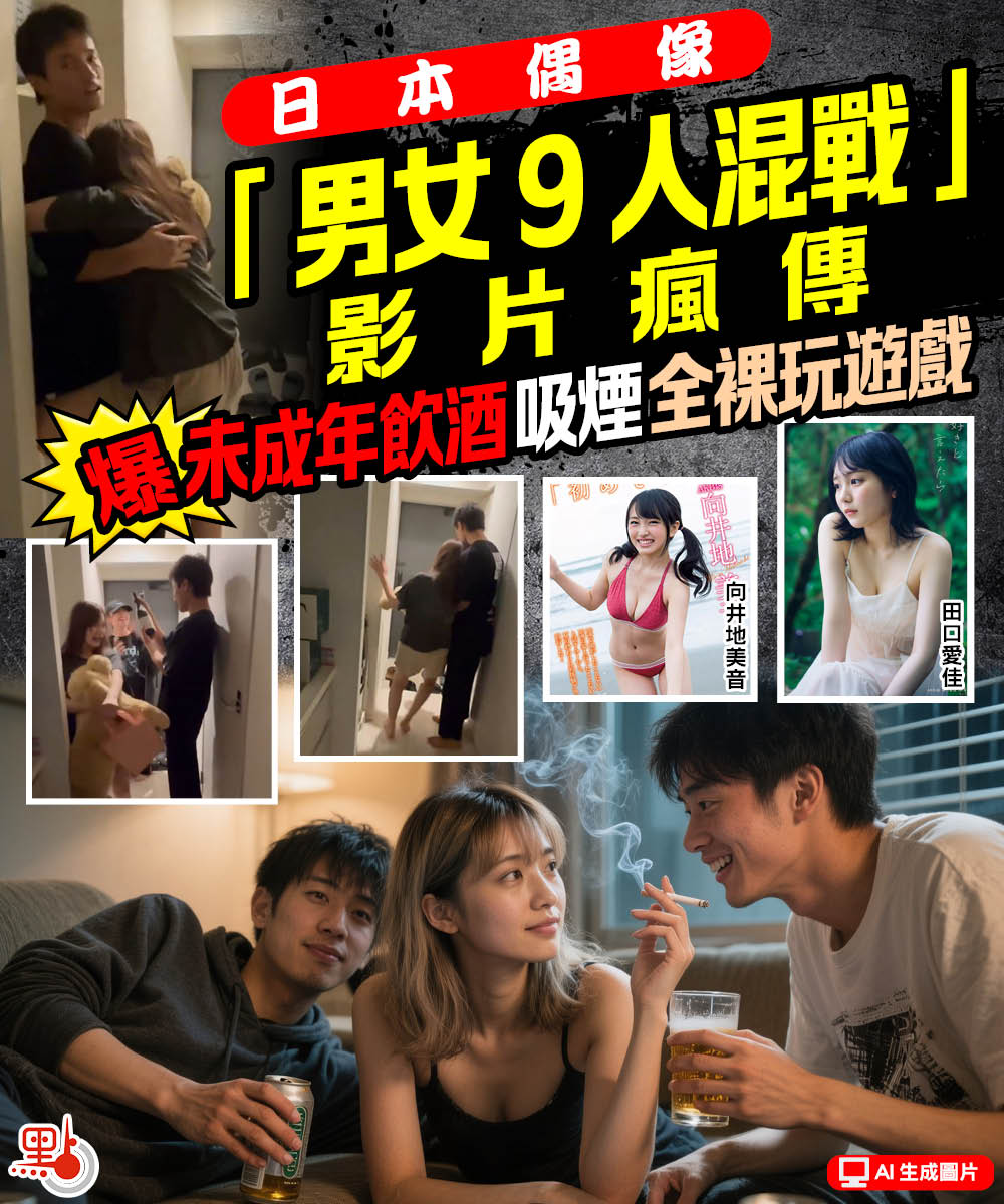 日本偶像「男女9人混戰」影片瘋傳 爆未成年飲酒吸煙全裸玩遊戲