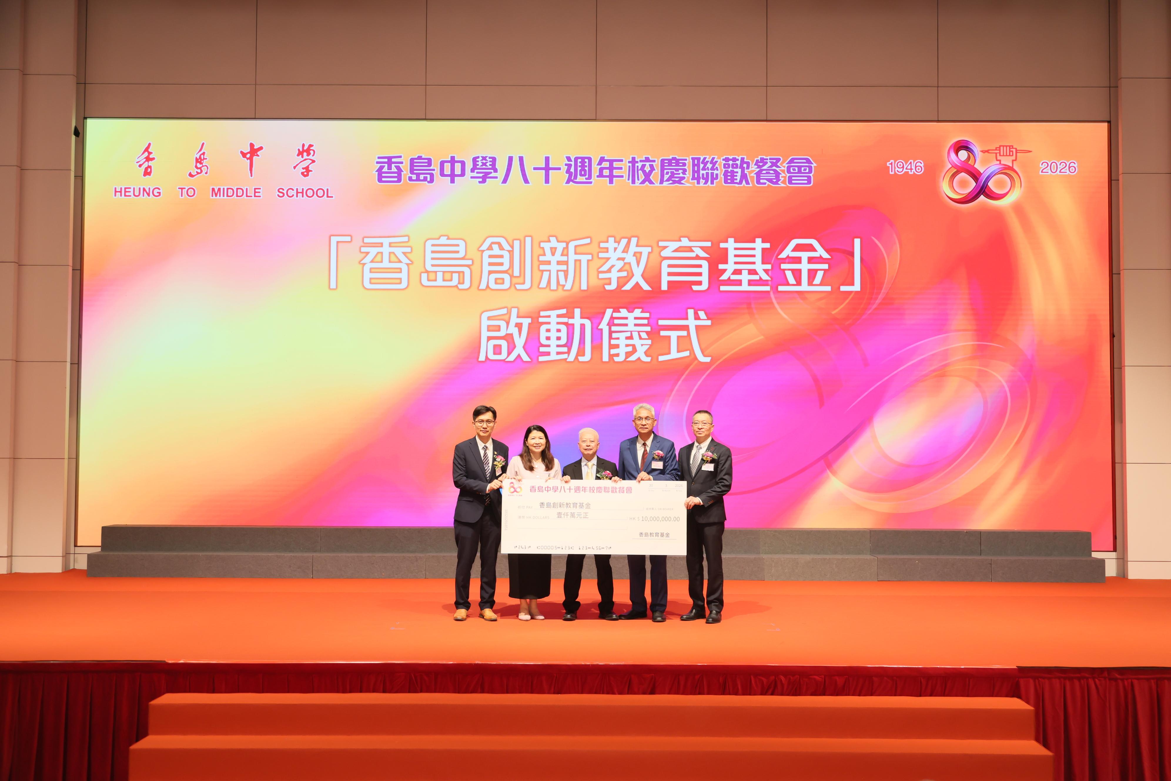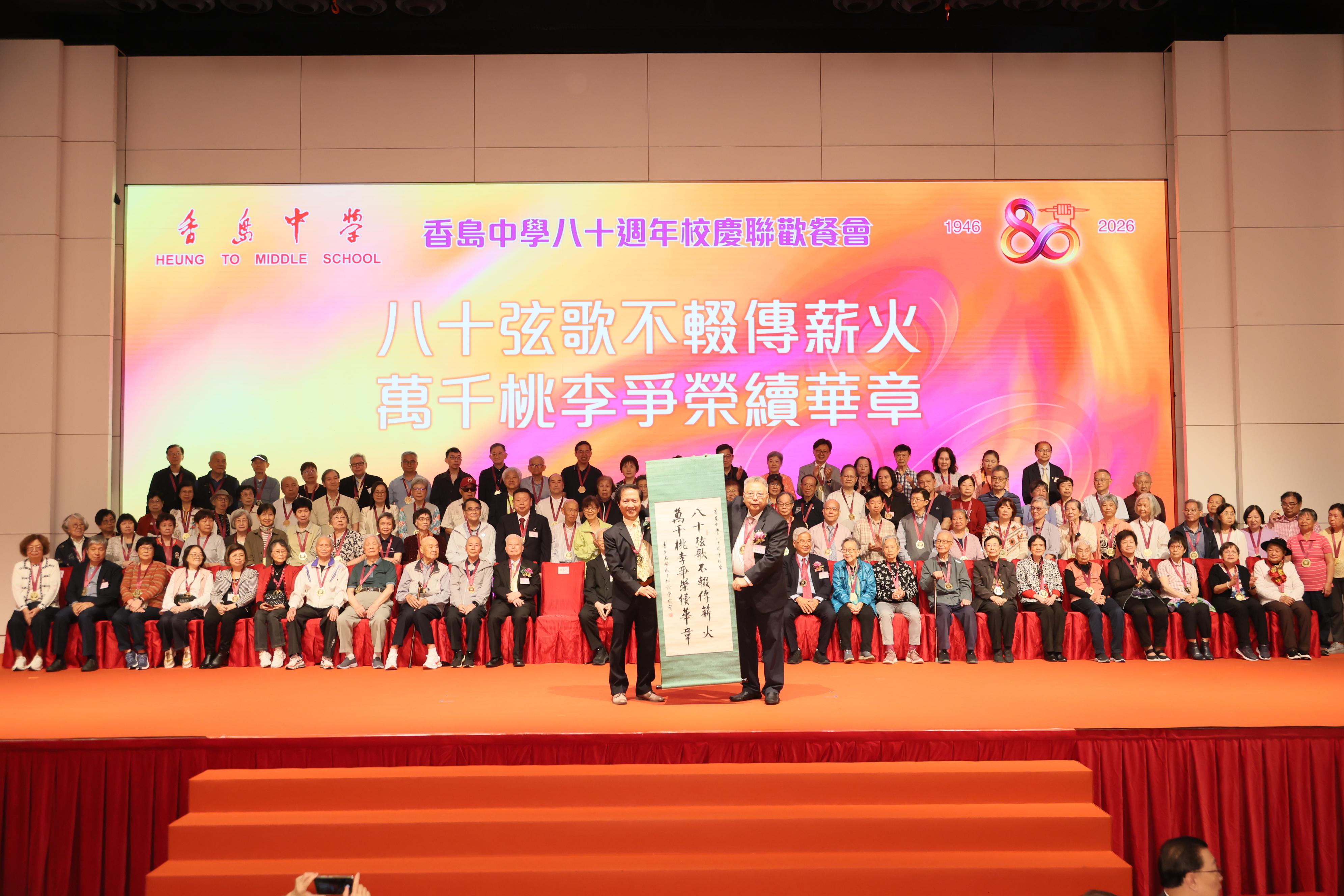 當晚的儀式環節豐富而隆重。王偉明部長頒發感謝狀予籌委會代表,表揚其對校慶工作的付出。教工環節中,全體高齡教工上台接受獻禮,馮漢民主席向學校致送賀禮,施俊輝博士向高齡教工致送鮮花,表達對教育前輩的崇高敬意。隨後舉行的「香島創新教育基金」啟動儀式,標誌着學校邁向數字教育新里程。校友會、海內外校友會及家教會代表紛紛上台獻禮,祝賀母校八十華誕。