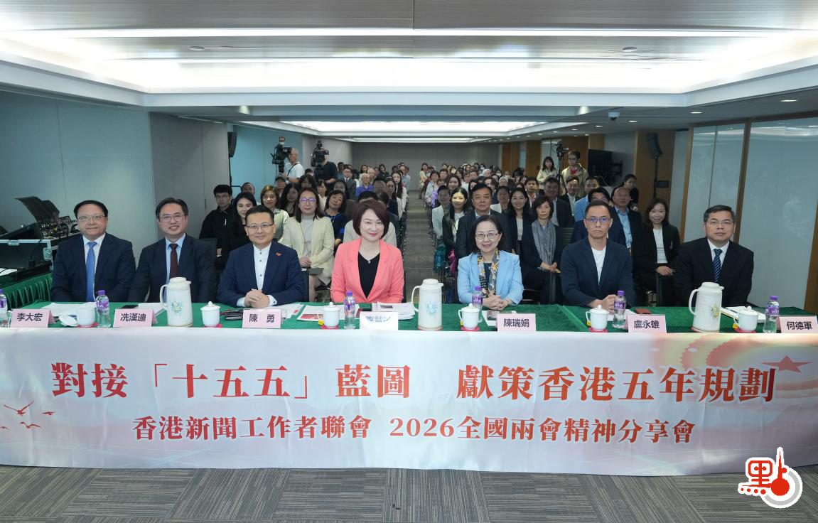 【點新聞報道】3月31日,香港新聞工作者聯會舉辦「對接國家『十五五』藍圖 獻策香港五年規劃」2026全國兩會精神分享會。全國政協委員、香港大公文匯傳媒集團董事長、香港新聞工作者聯會主席李大宏出席並致辭。全國人大常委會委員、立法會主席李慧琼,全國政協常委唐英年,港區全國人大代表、立法會議員、新社聯會長陳勇,港區全國人大代表、互聯網專業協會會長冼漢廸,全國政協委員、香港總商會主席陳瑞娟,全國政協委員、巴士的報社長盧永雄等重量級嘉賓出席,與香港新聞界同仁深入研習全國兩會重要精神,聚焦國家「十五五」規劃開局之年香港的發展機遇與角色擔當,為香港首份五年規劃編制建言獻策。中央駐港聯絡辦宣文部二級巡視員何德軍應邀出席。