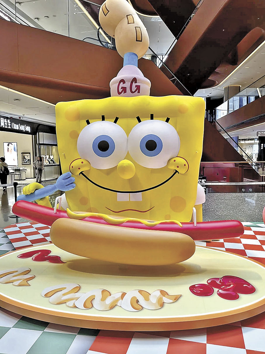 人氣卡通角色海綿寶寶、派大星、章魚哥及蟹老闆等來到啟德AIRSIDE「比奇堡滋味派對」,帶大家潛入比奇堡的歡樂國度,一起展開美食探險之旅。場內特設三大創意打卡位,其中「巨型蟹堡滋味套餐」被多層繽紛巨型漢堡和黃金扭紋薯條包圍,大家可以抱起巨型薯條合照,留下充滿玩味的回憶。